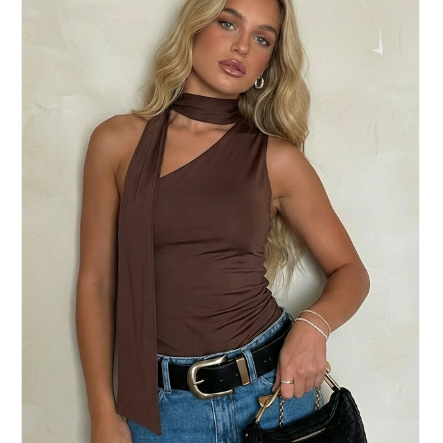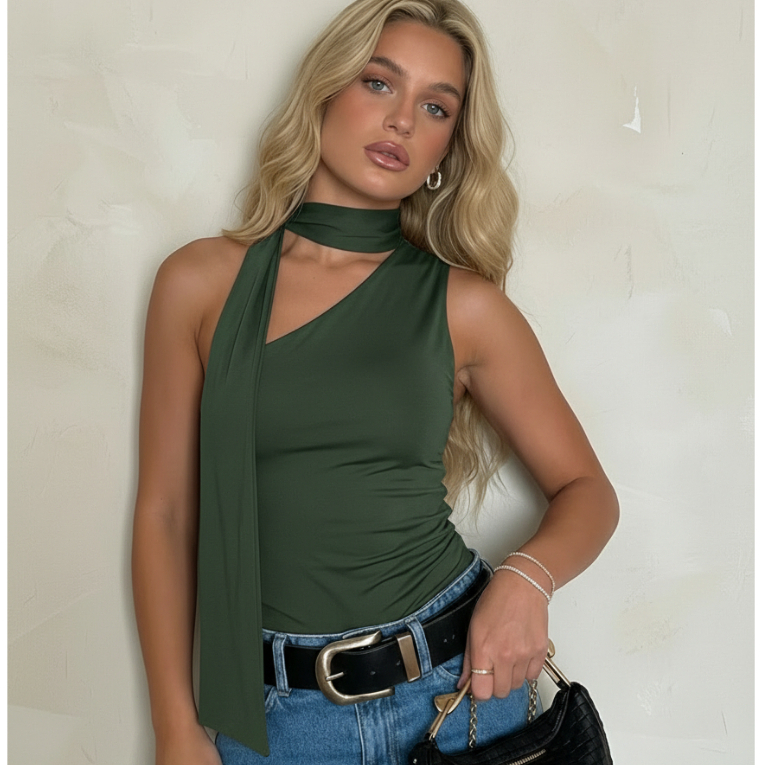 Blusa feminina um ombro só gola choker amarra no pescoço - Drapeado na cintura Elegante Sexi Gringa