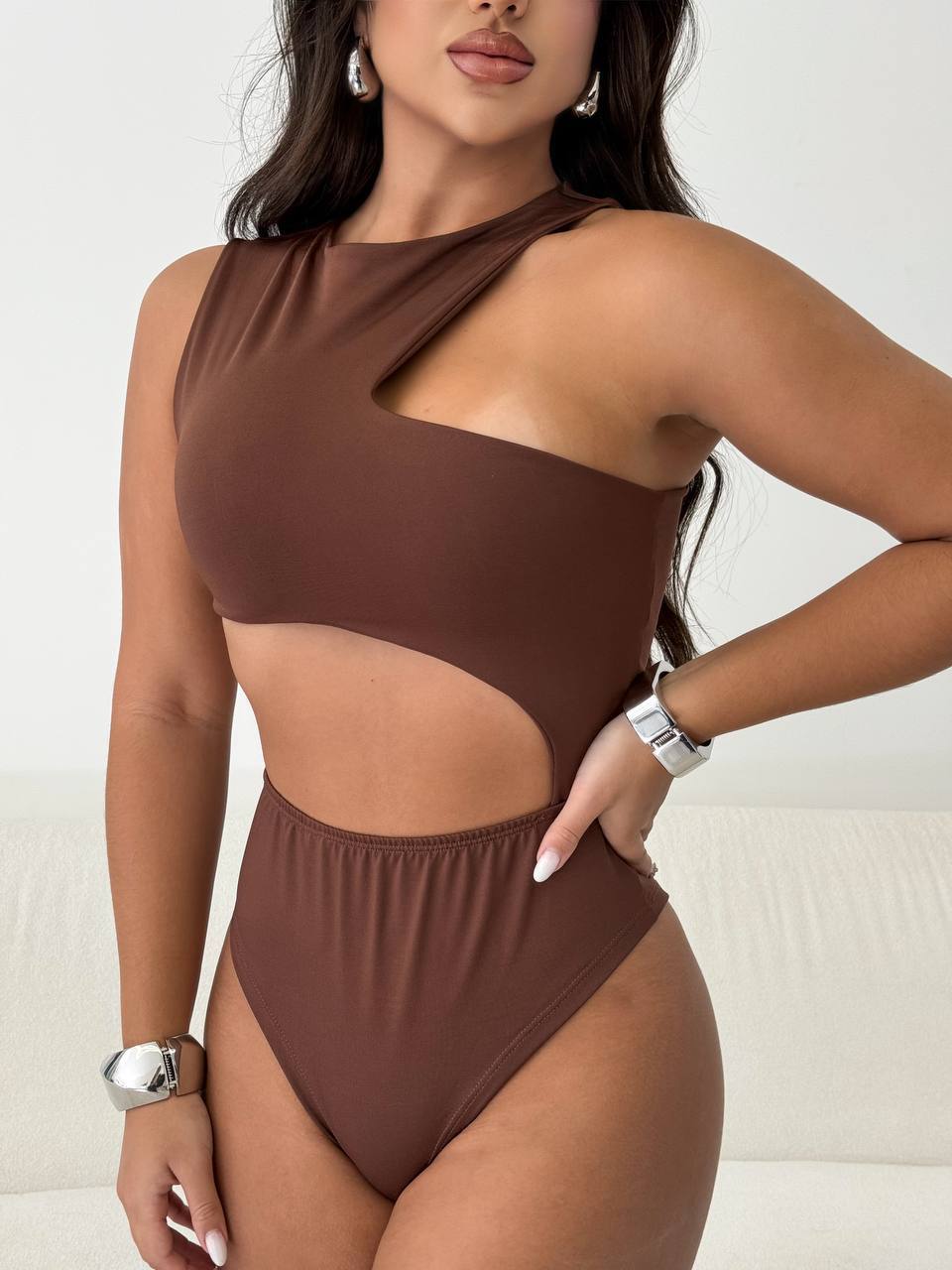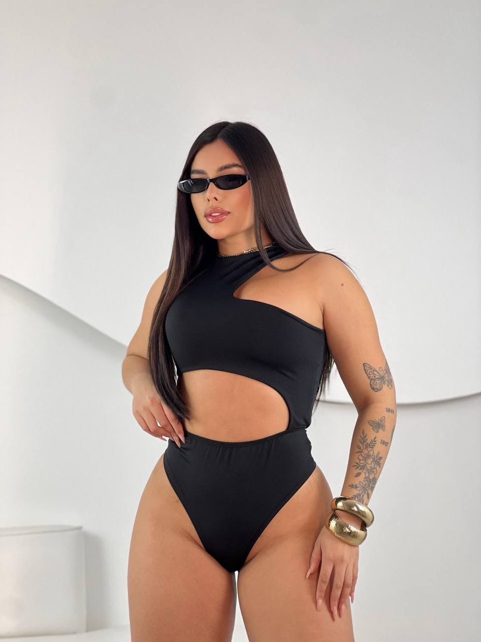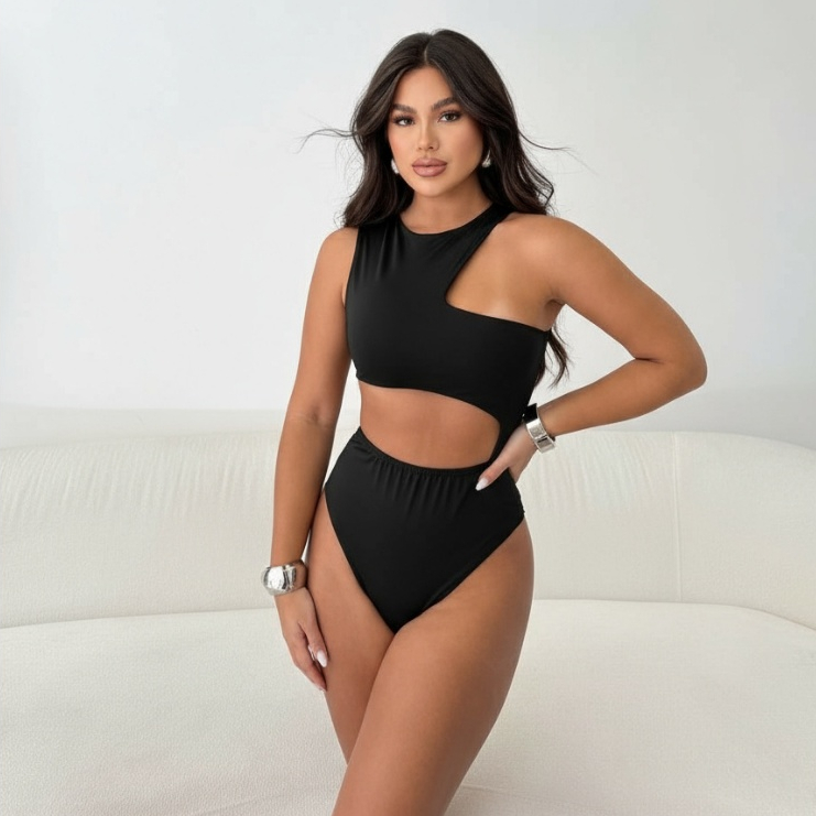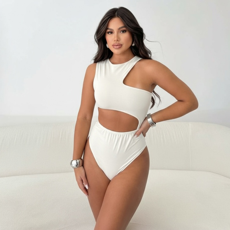 Body Feminino Recorte Geométrico Antonela - Suplex com Premium Forro Duplo, SexI, Elegante Blogueira