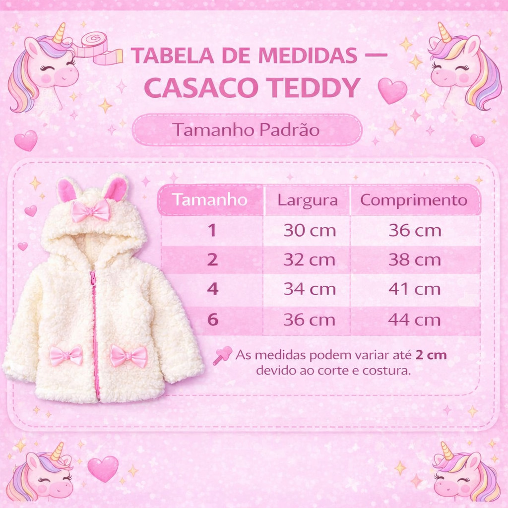 Casaco Teddy Infantil Menina Capuz Touca com Ziper Ted Tedy Forrado Quente Jaqueta Infantil