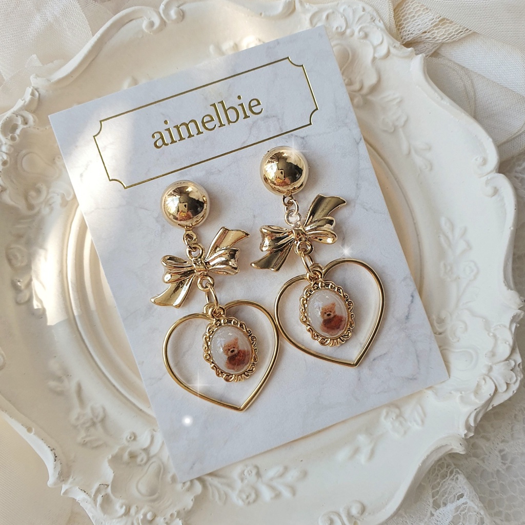 ♥ Jóias Coreanas aimelbie Brincos Ursinhos De Pelúcia Vintage-Versão Coração