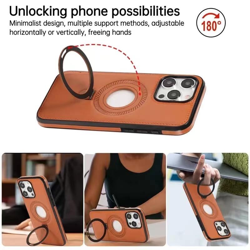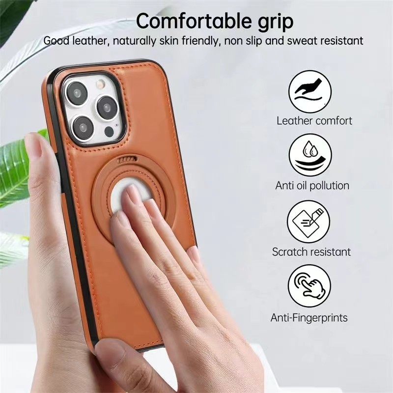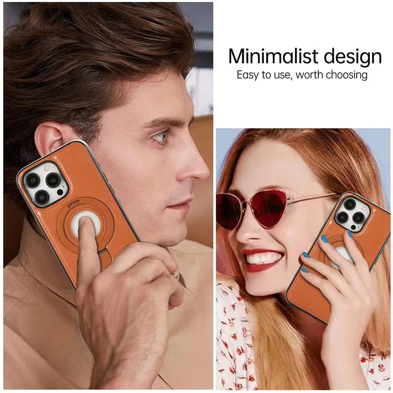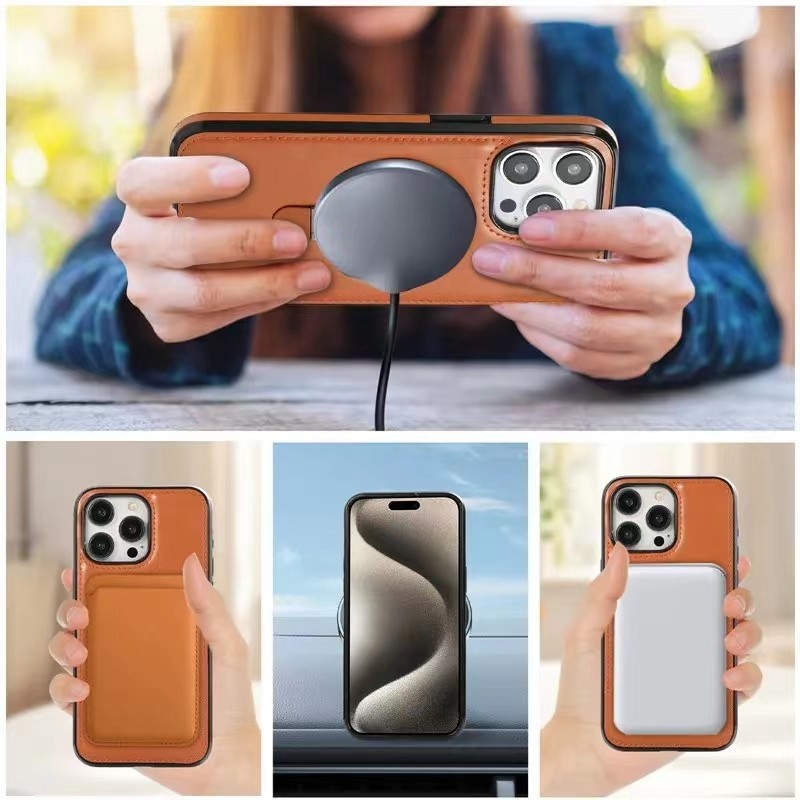 Nova Capa De Couro Resistente A Choques Para iPhone 16 15 14 13 12 11 Pro Max Original Com Suporte Embutido Magsafe