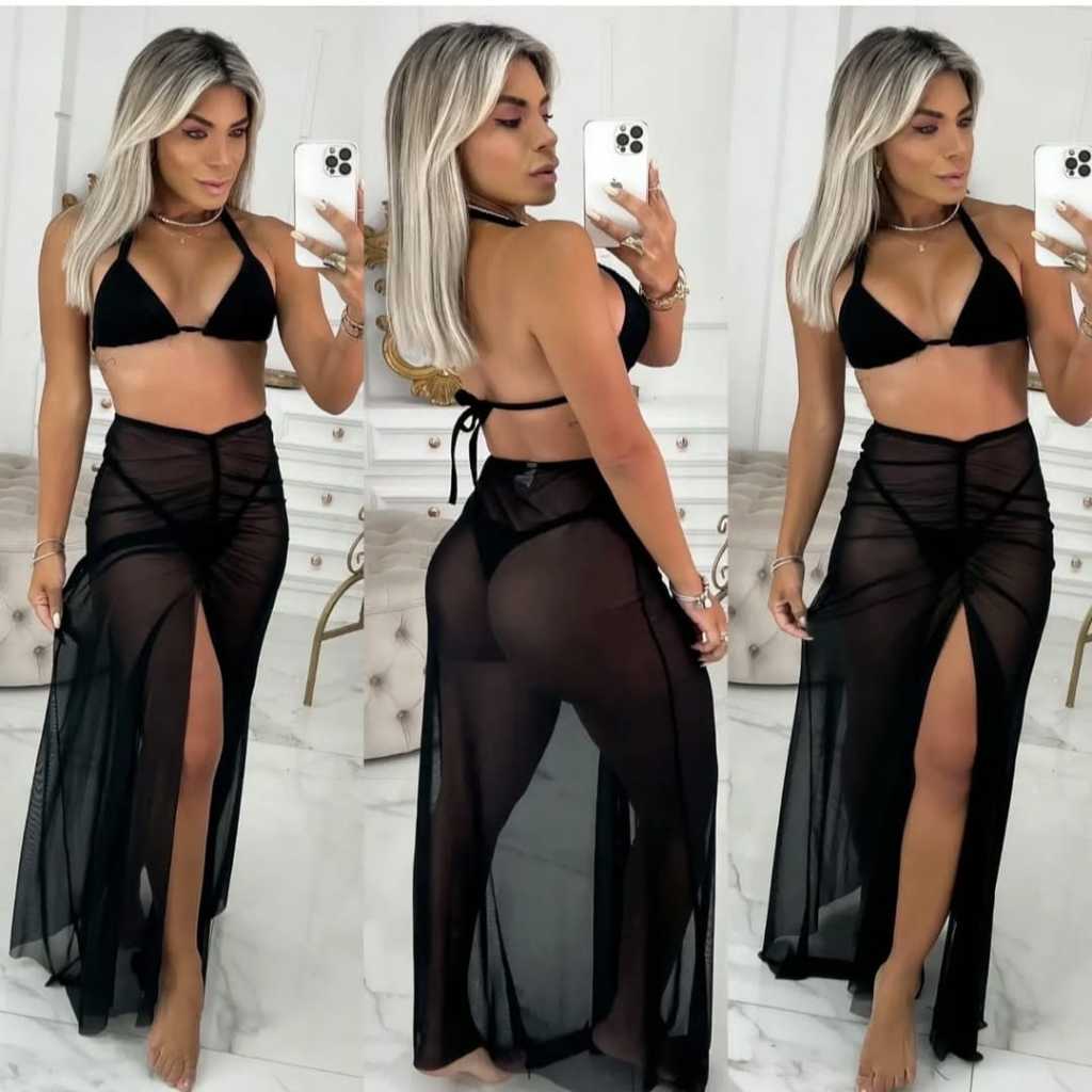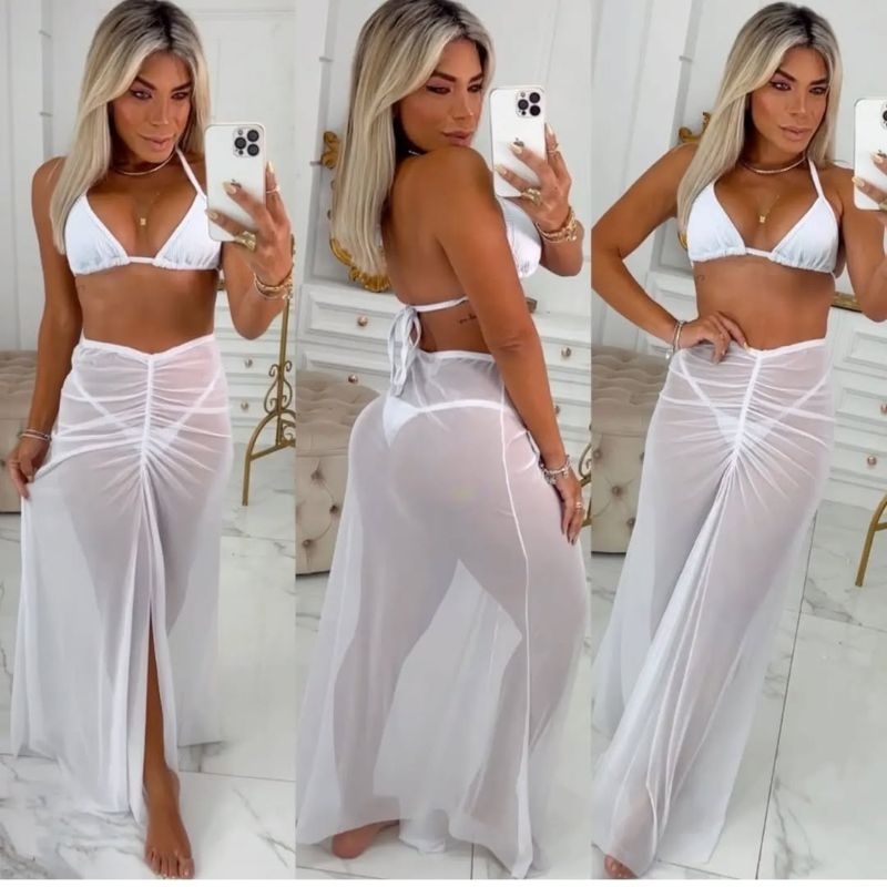 Saída de Praia Feminino Longa de Tule, Canga Feminina Tule, Saia Longa Praia Transparente