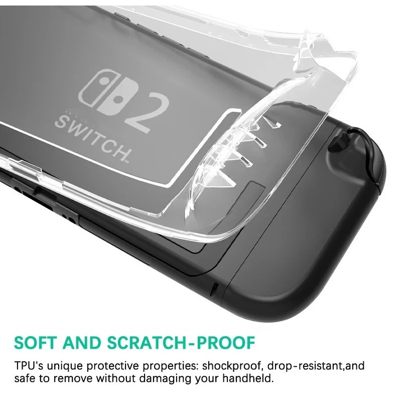 Capa tpu transparente para nintendo switch 2, capa macia à prova de choque, anti-queda