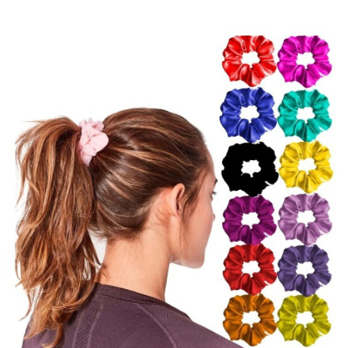 kit com 12 toucas de cetim dupla face e 12 xuxinhas de cetim - cores sortidas