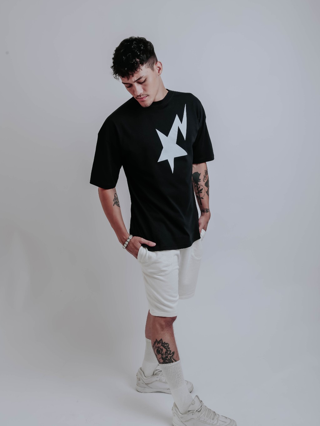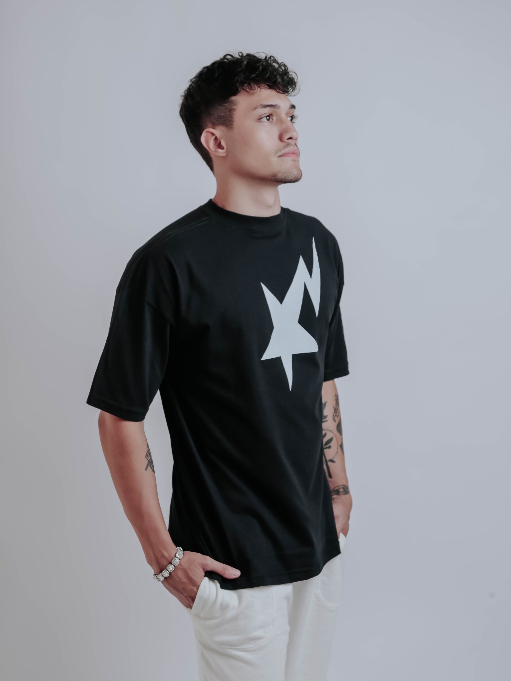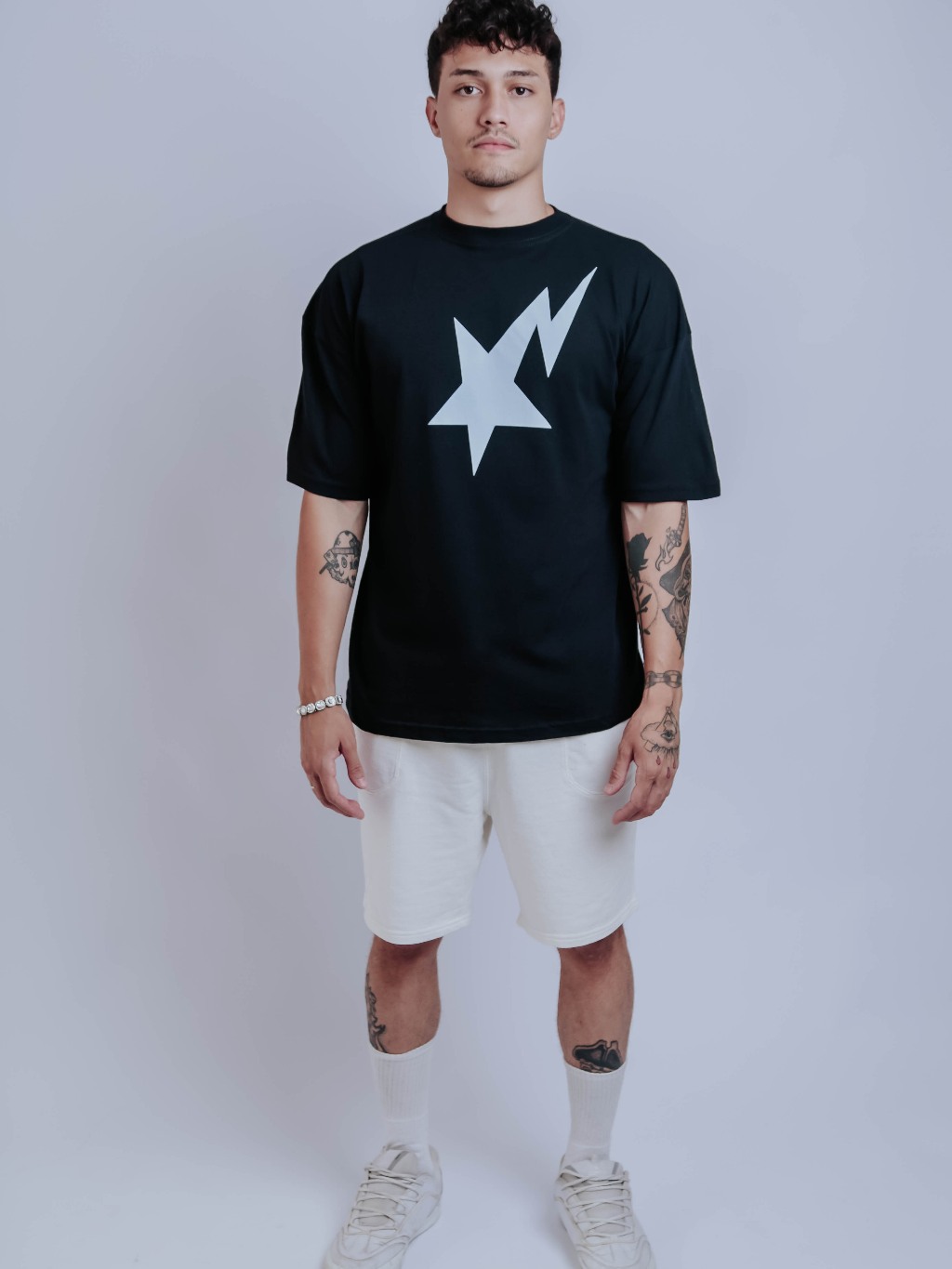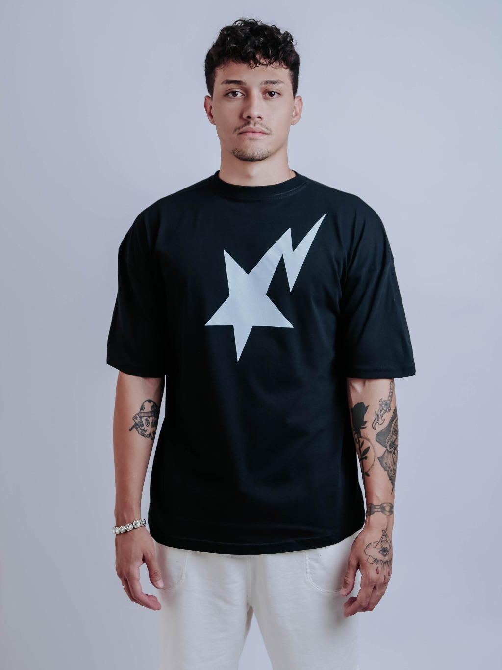 Camiseta OVERSIZED estampada Preta blusa camisa Streetwear em algodão 30.1 modelo Star estrela Premium OVERSIZED