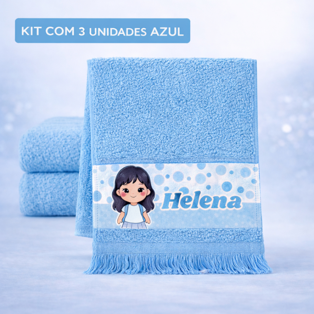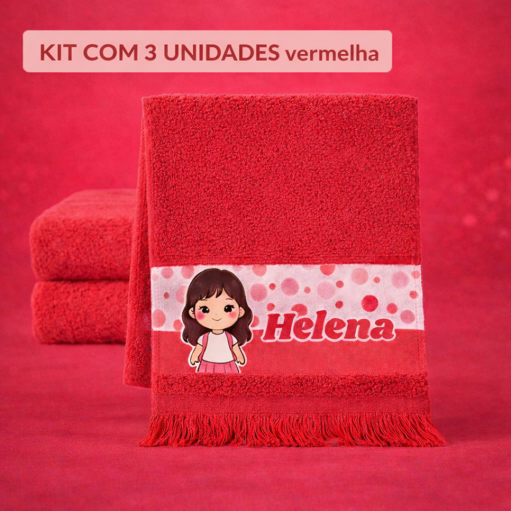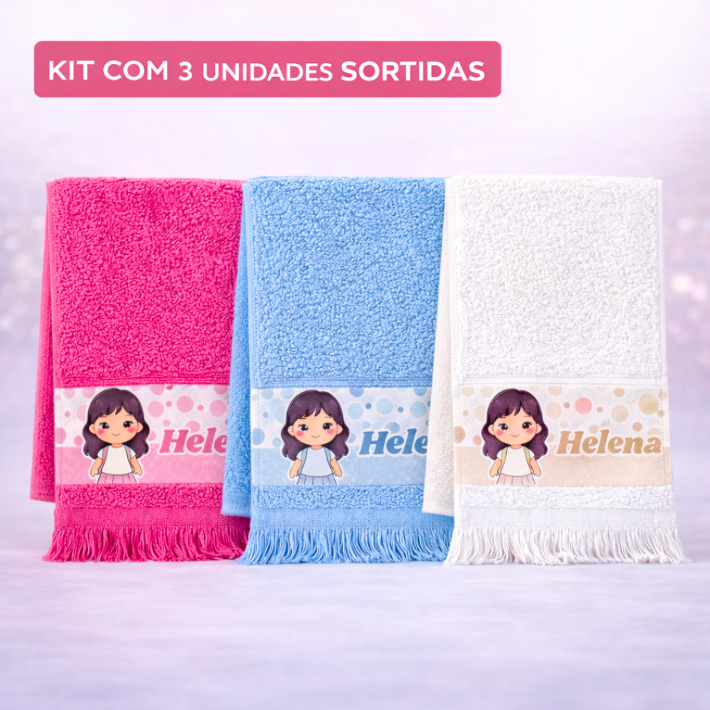 Kit 3 Toalhas de Boca Personalizadas Lavabo | Toalhinha Infantil com Nome e Caricatura