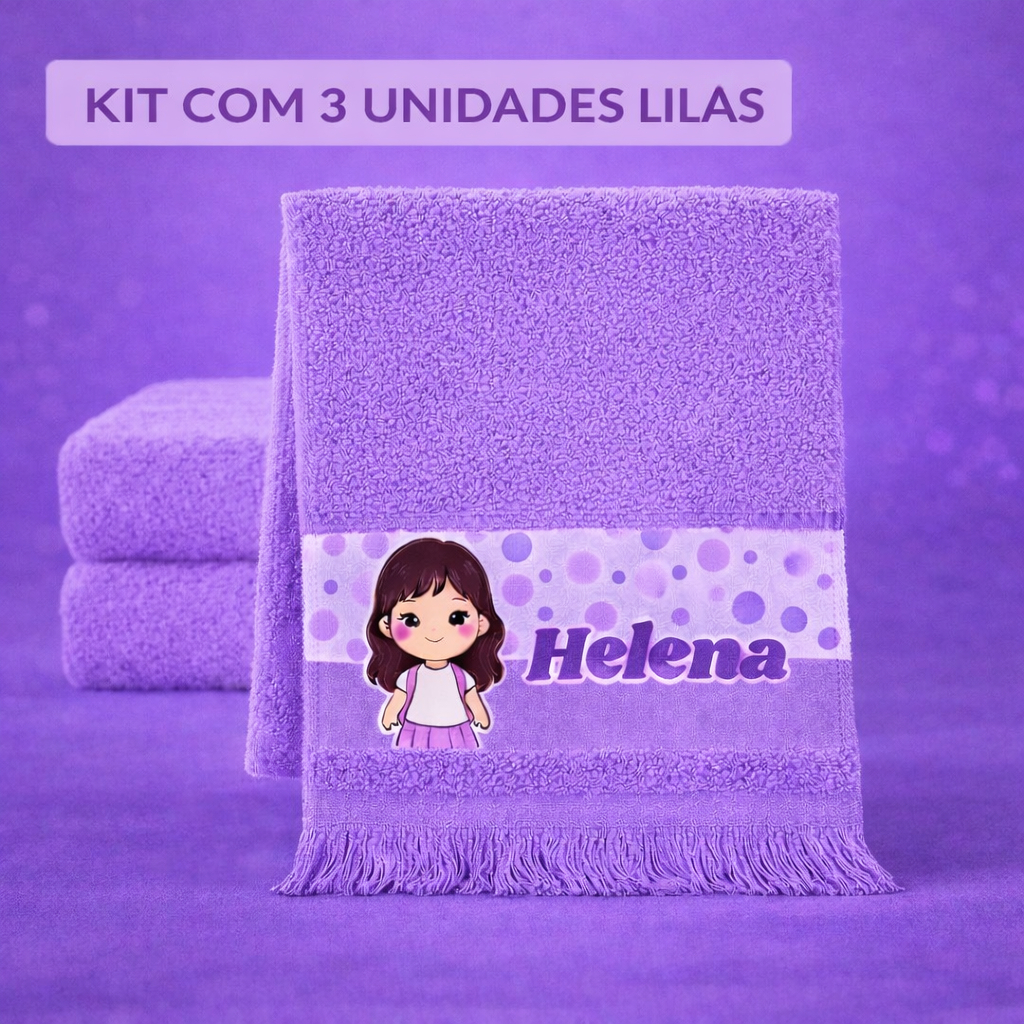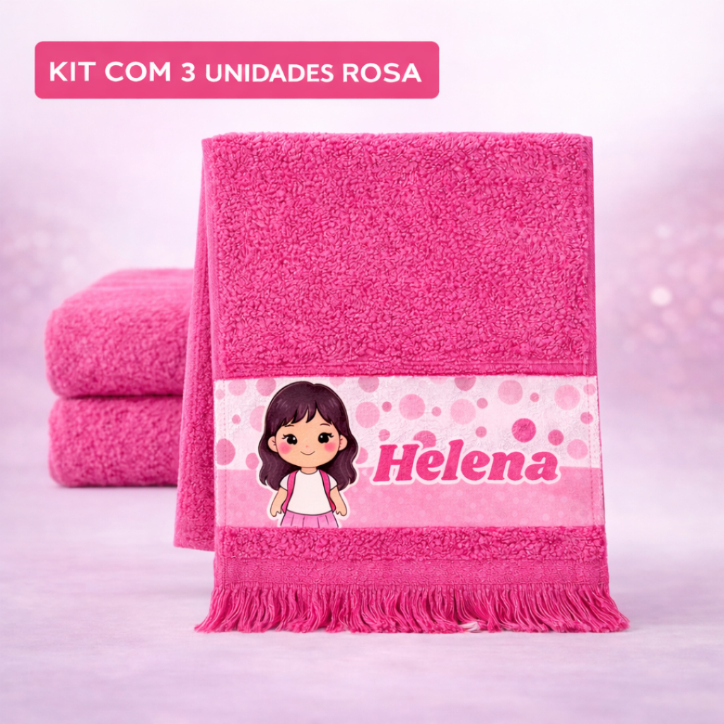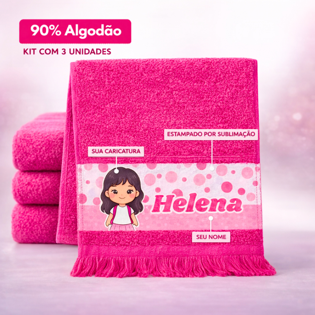 Kit 3 Toalhas de Boca Personalizadas Lavabo | Toalhinha Infantil com Nome e Caricatura