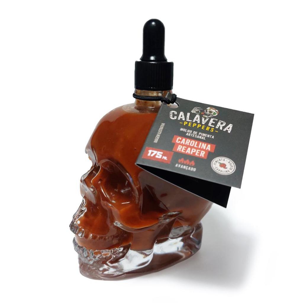 Caveira de vidro com pimenta Carolina Reaper 170ml - Calavera Peppers