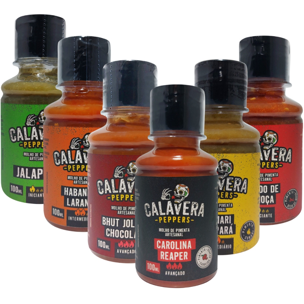 Kit com 6x Molhos De Pimenta Calavera Peppers - 100ml