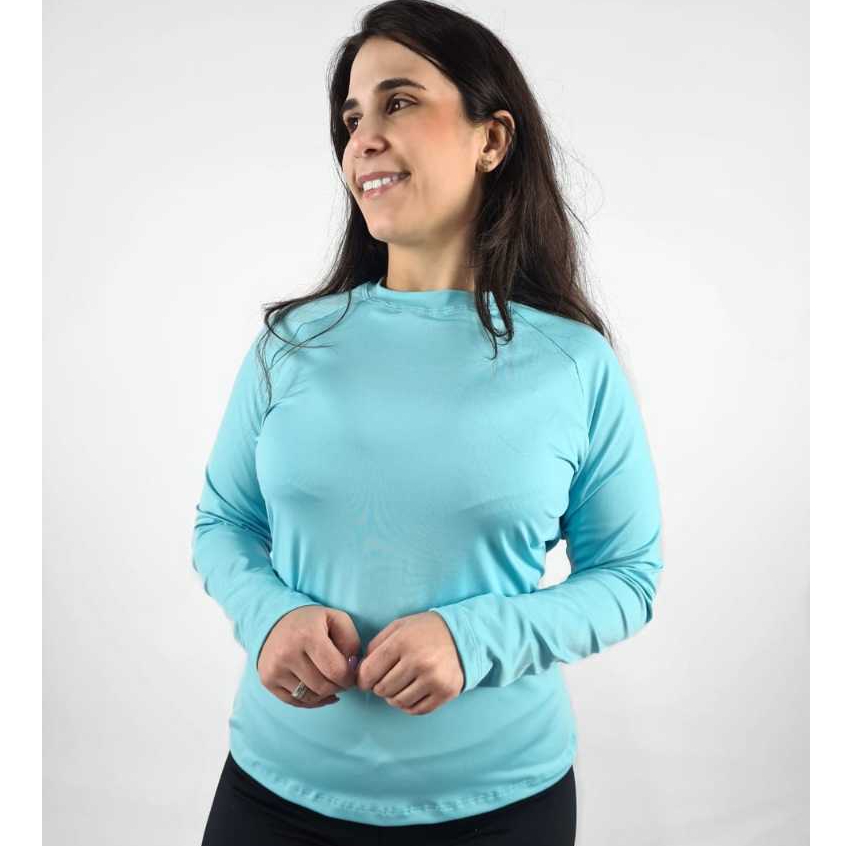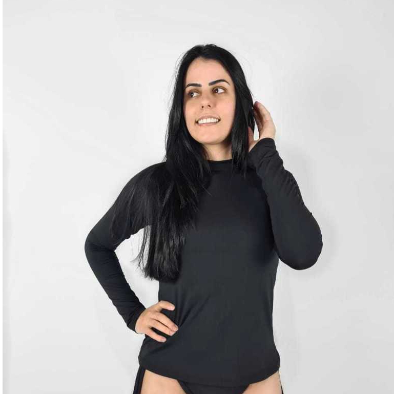 Camisa Feminina Proteção Solar Uv+50 Camiseta Segunda Pele Térmica Longa Moda Praia piscina Promoção