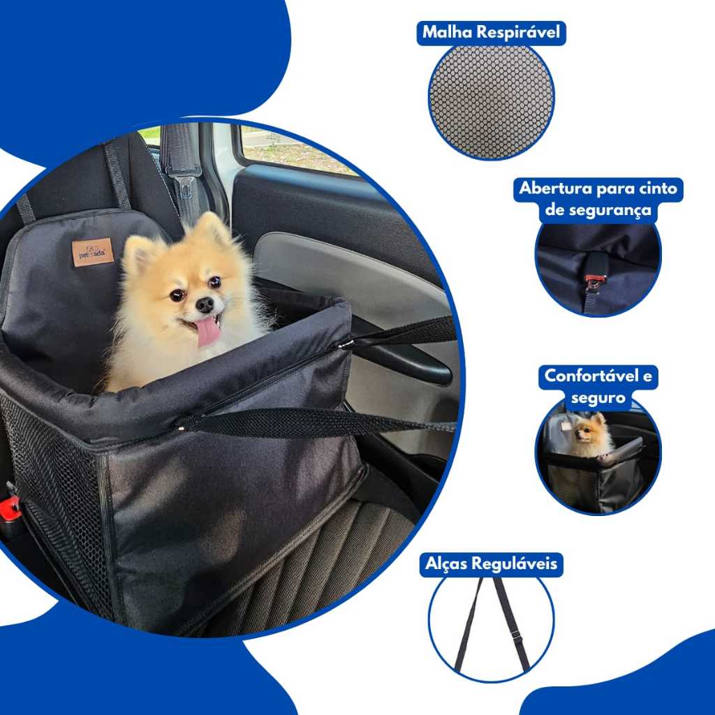 Assento Pet Carro Para Cachorro Gato Até 15kg Com Cinto de Segurança Cadeira Cadeirinha Transporte