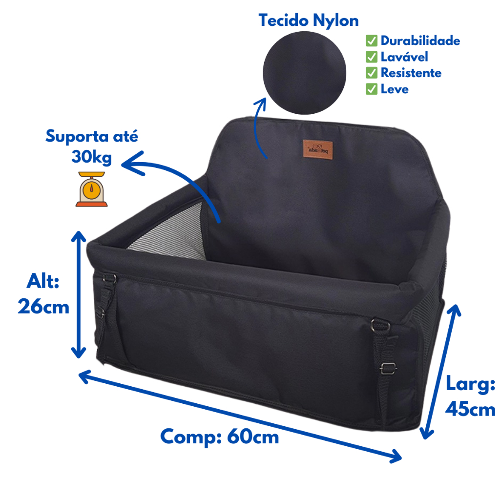 Assento Cadeirinha Cadeira Pet Carro Para 2 Cachorros ou Gatos Juntos Ate 15kg Transporte Viagem