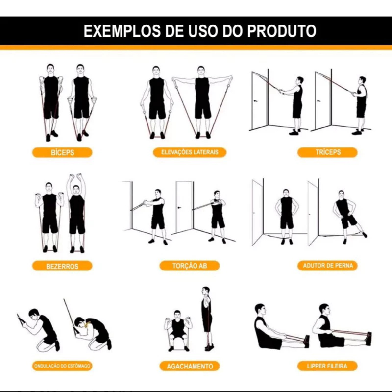 Kit 11 Elastico Extensor Treino Academia Exercícios Em Casa