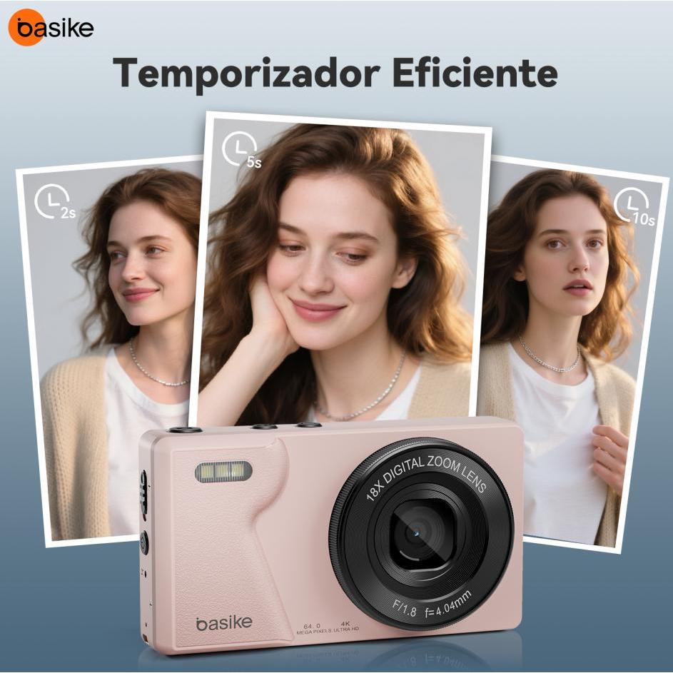 Astgn X Basike Câmera Digital 64MP,4K,Display ColoridoCamera Frontal e Traseira,Compacta e Portátil