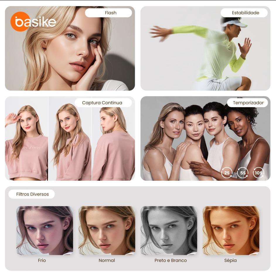 Astgn X Basike Câmera Digital Compacta | 64MP | 4K | Zoom 16X | Tela Rotativa 2.8” | Portátil