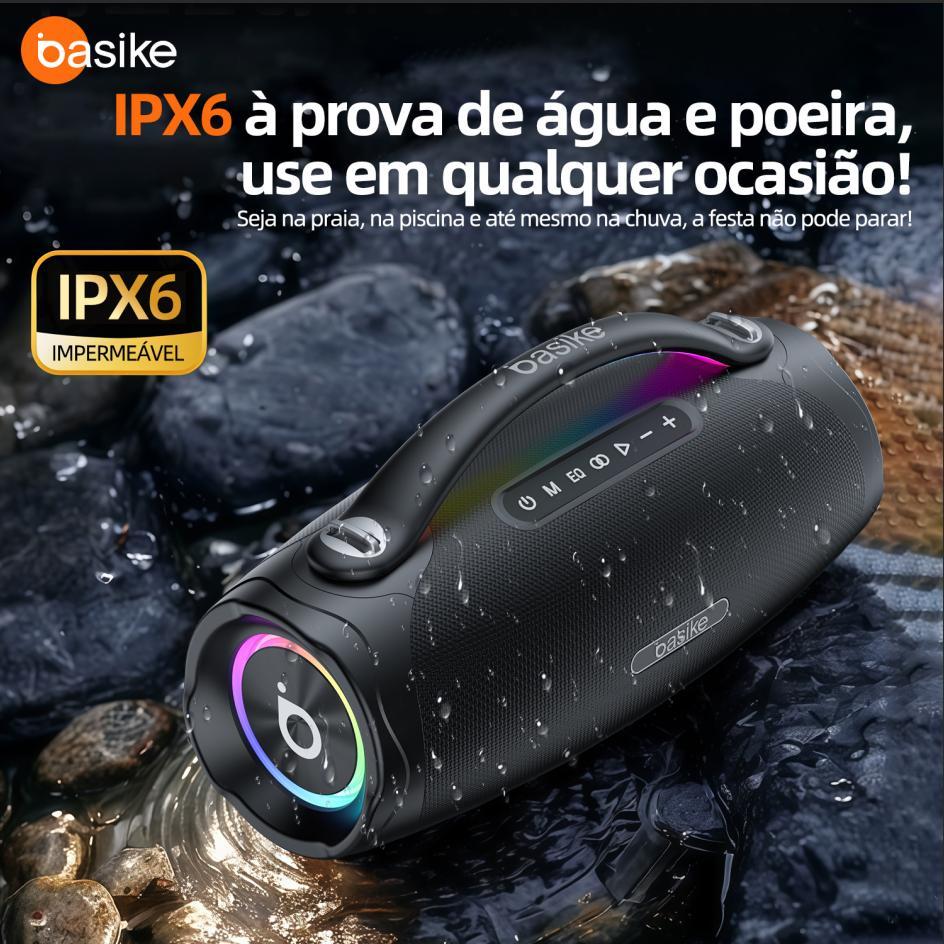 Astgn X Basike Caixa de Som Bluetooth 100 W RMS com Bateria 10.000 mAh, TWS, IPX6 e Luzes RGB