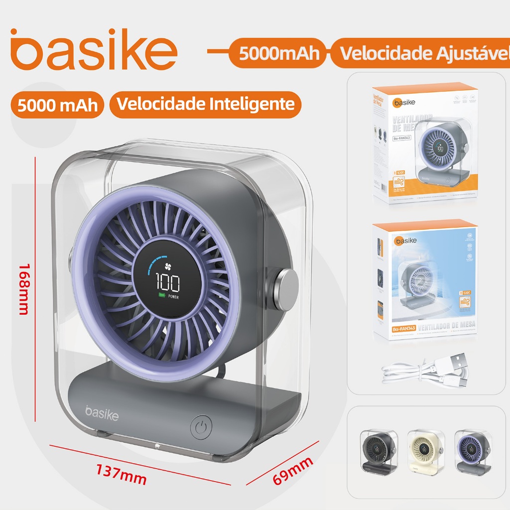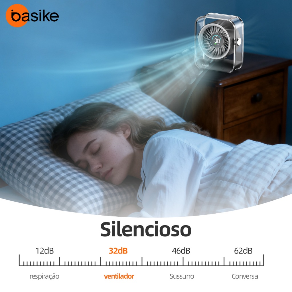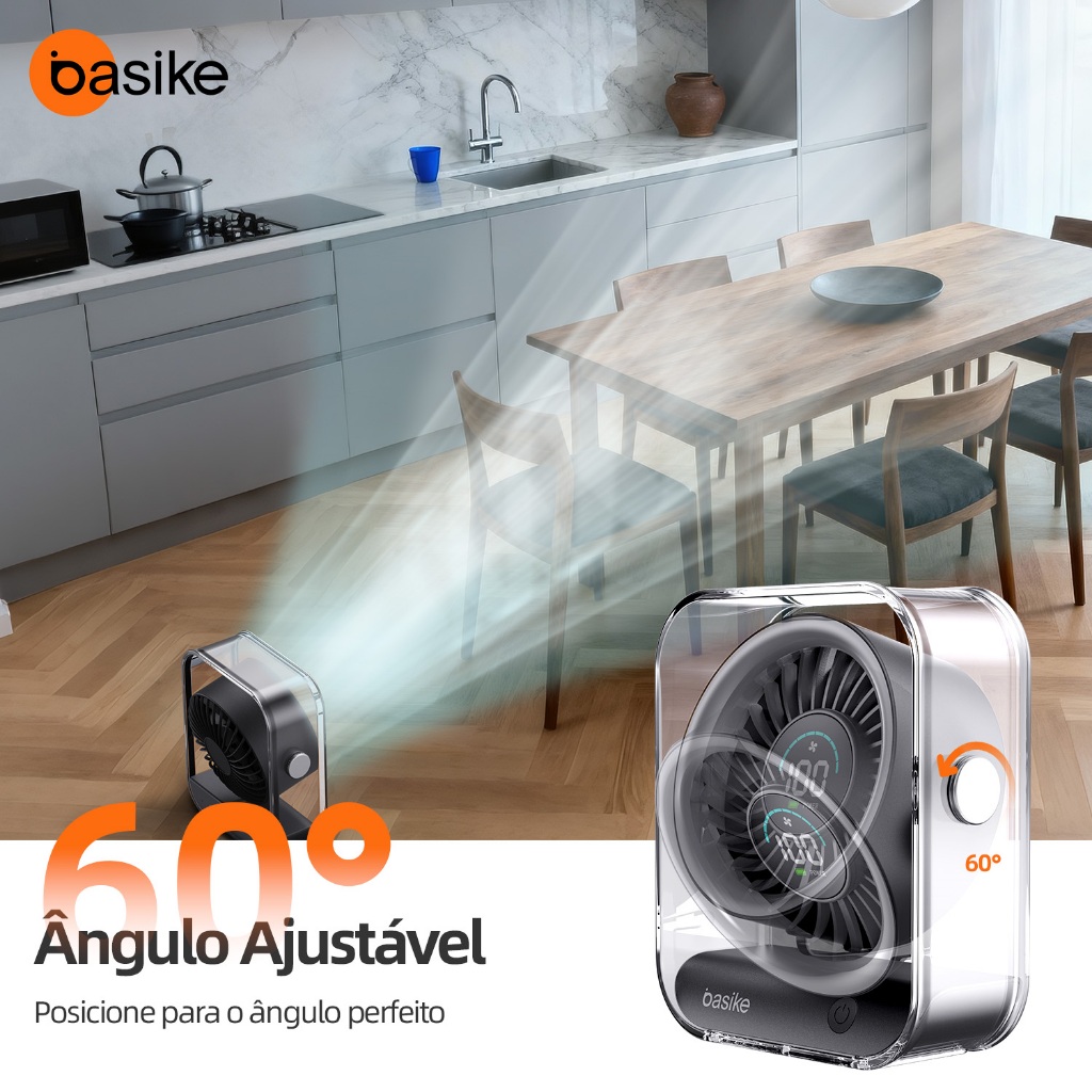 Astgn X Basike Ventilador de Mesa Portátil, Silencioso e Potente com Display Digital