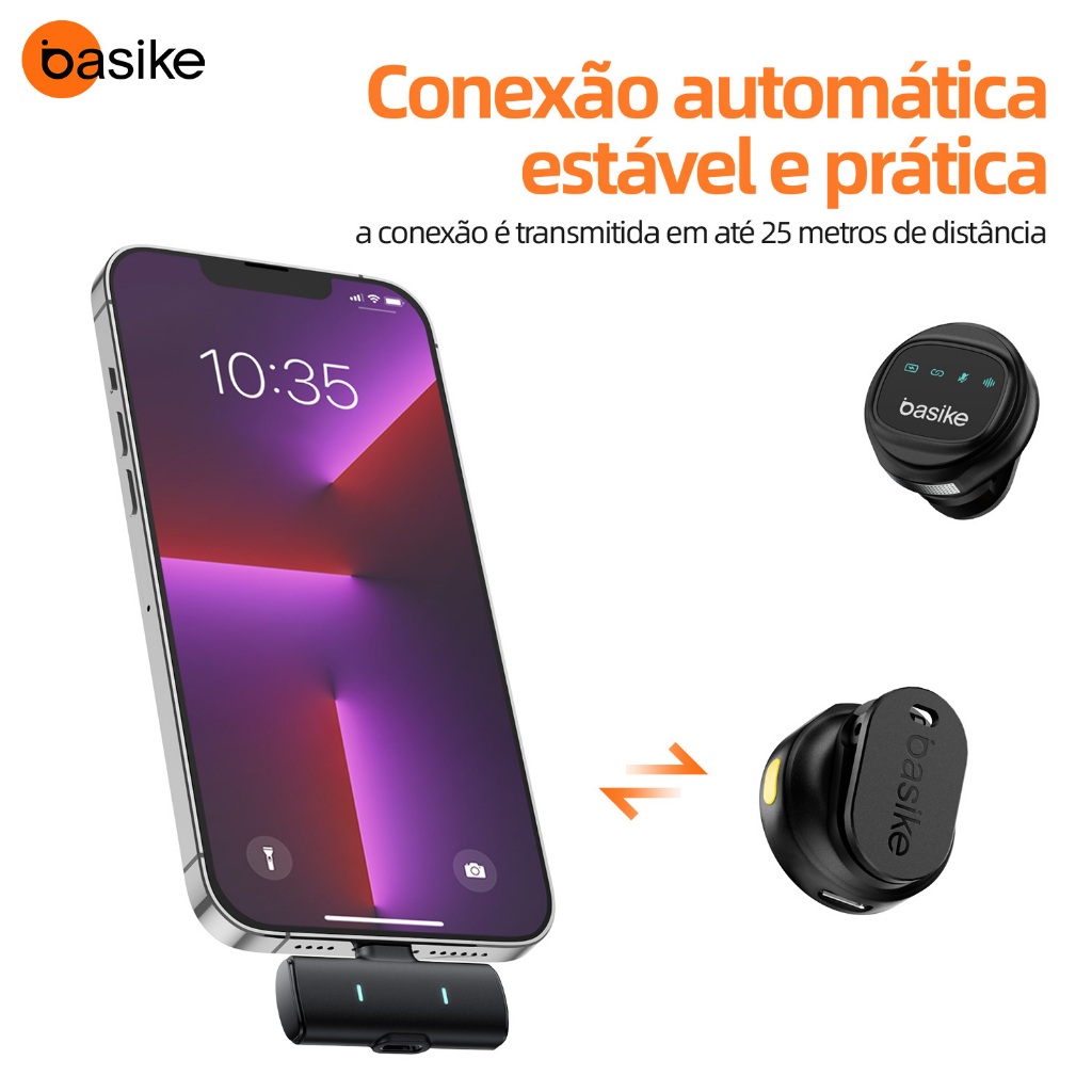 Astgn X Basike Microfone de Lapela Sem Fio Maginético e Alta Qualidade de Som Bateria LongaCompact