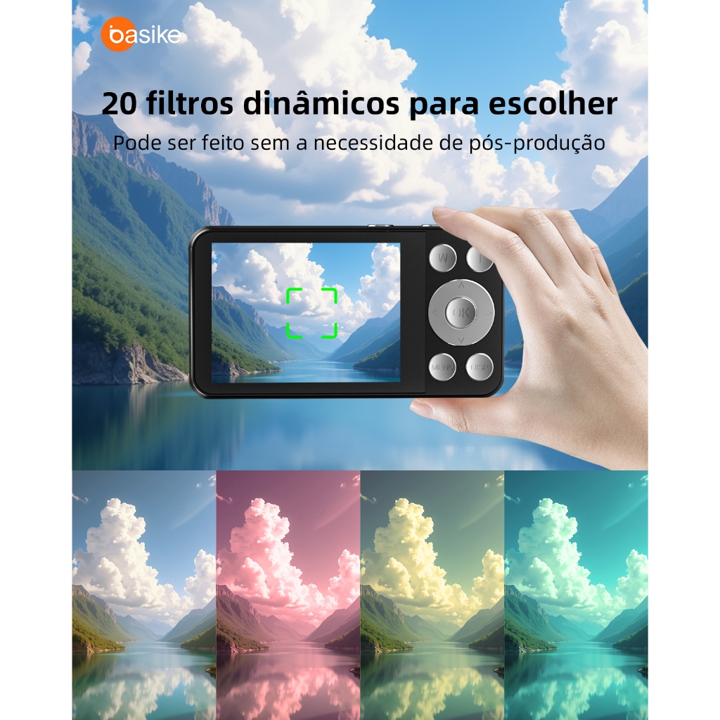 Astgn X Basike Câmera Digital 4K Zoom 18XEstabilização Eletrônica | Tela 2.8” | Fotos 64MP | 3 Cor