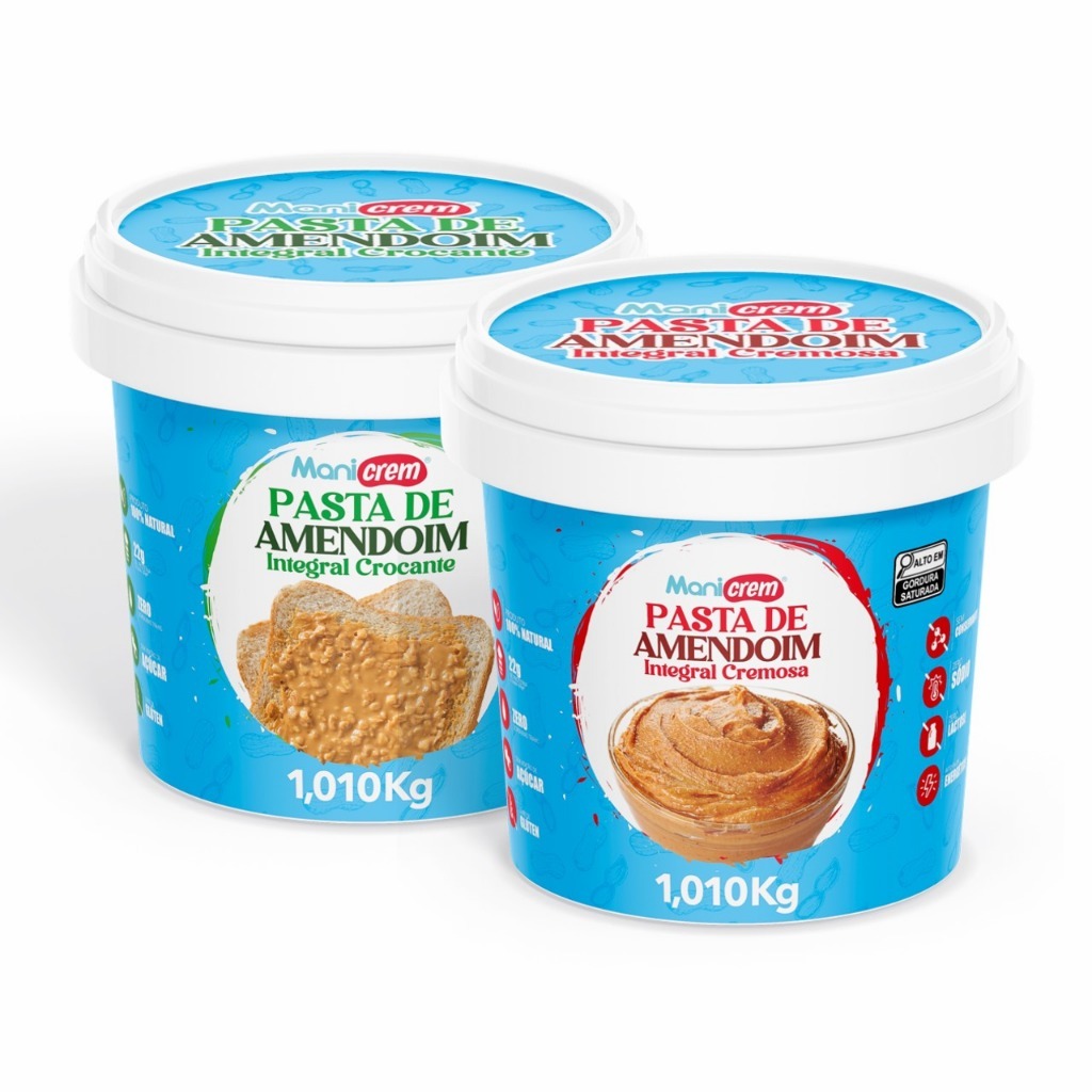Pasta De Amendoim Integral Kit 01Cremosa 1kg e 01 Crocante 1 kg 100% Amendoim