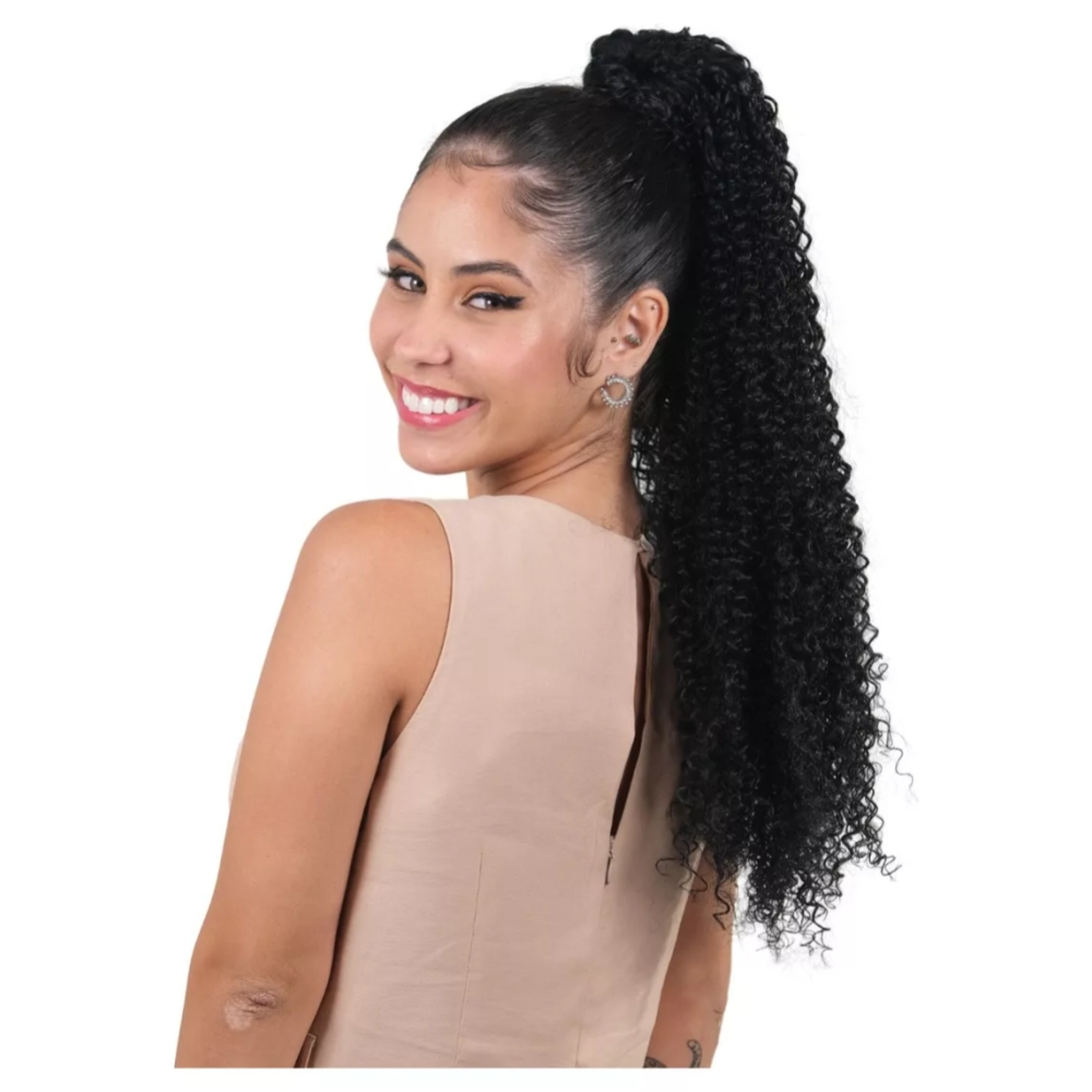 Aplique Rabo de Cavalo 70cm Bio Fibra Fashion Classic Eva Aspecto Humano Com Grampos Fixacao