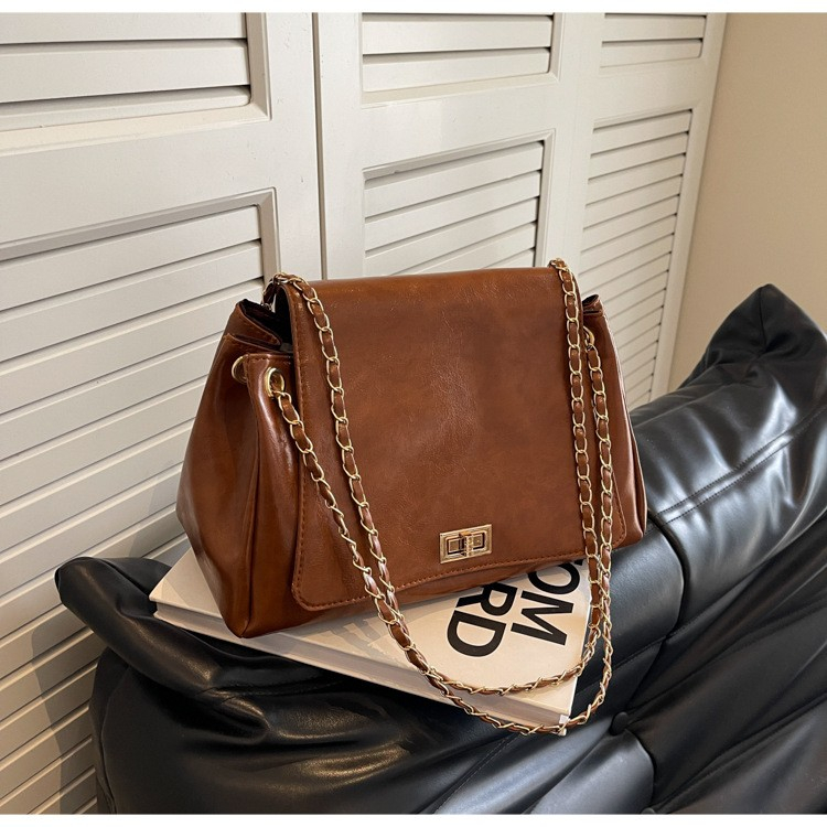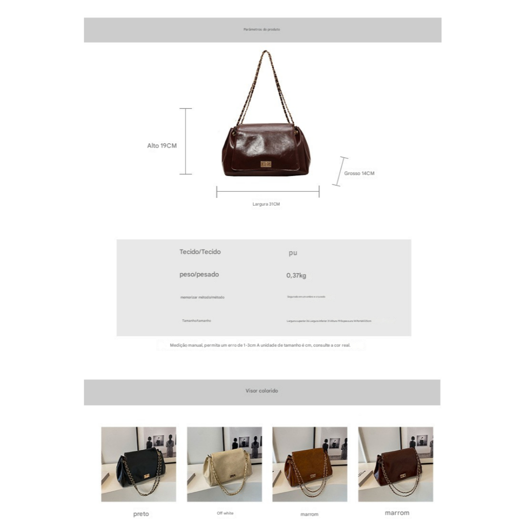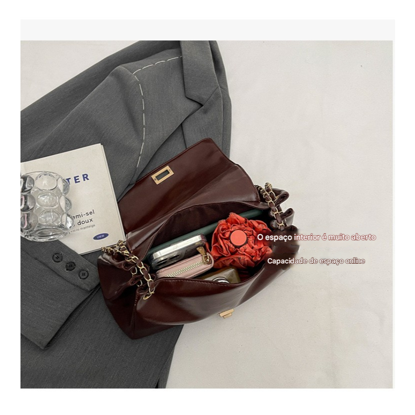 Bolsa Tote Feminina Bordô, Bolsa de Ombro Xadrez com Alça de Corrente, Bolsa Transversal médio bolsas feminina elegante