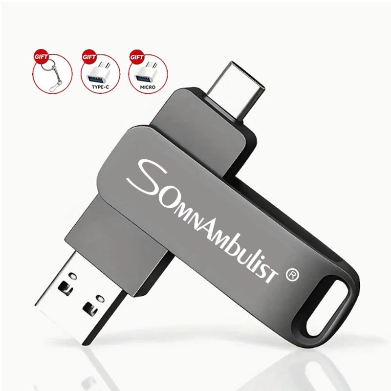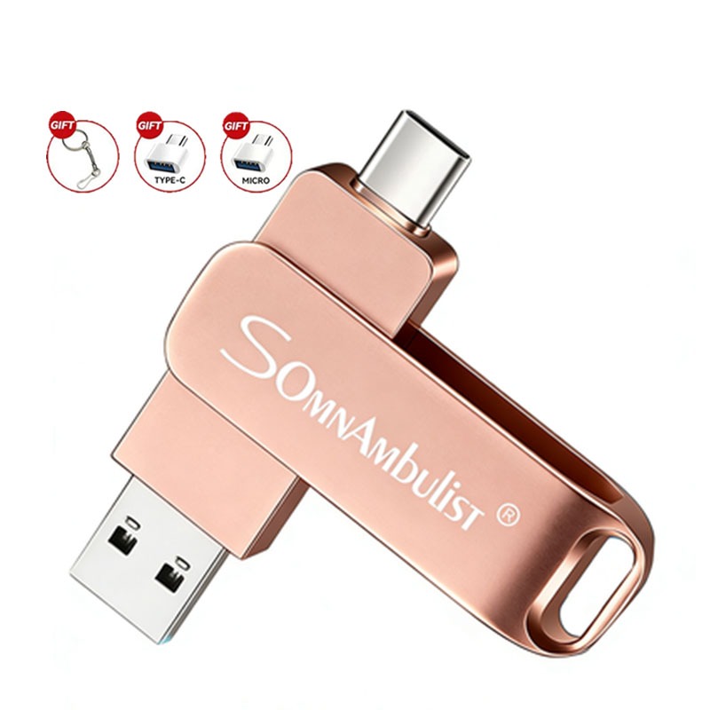 TYPE-C 2 em 1 Flash Drive 32GB/64GB/128GB Capacidade Real, Armazenamento Estável