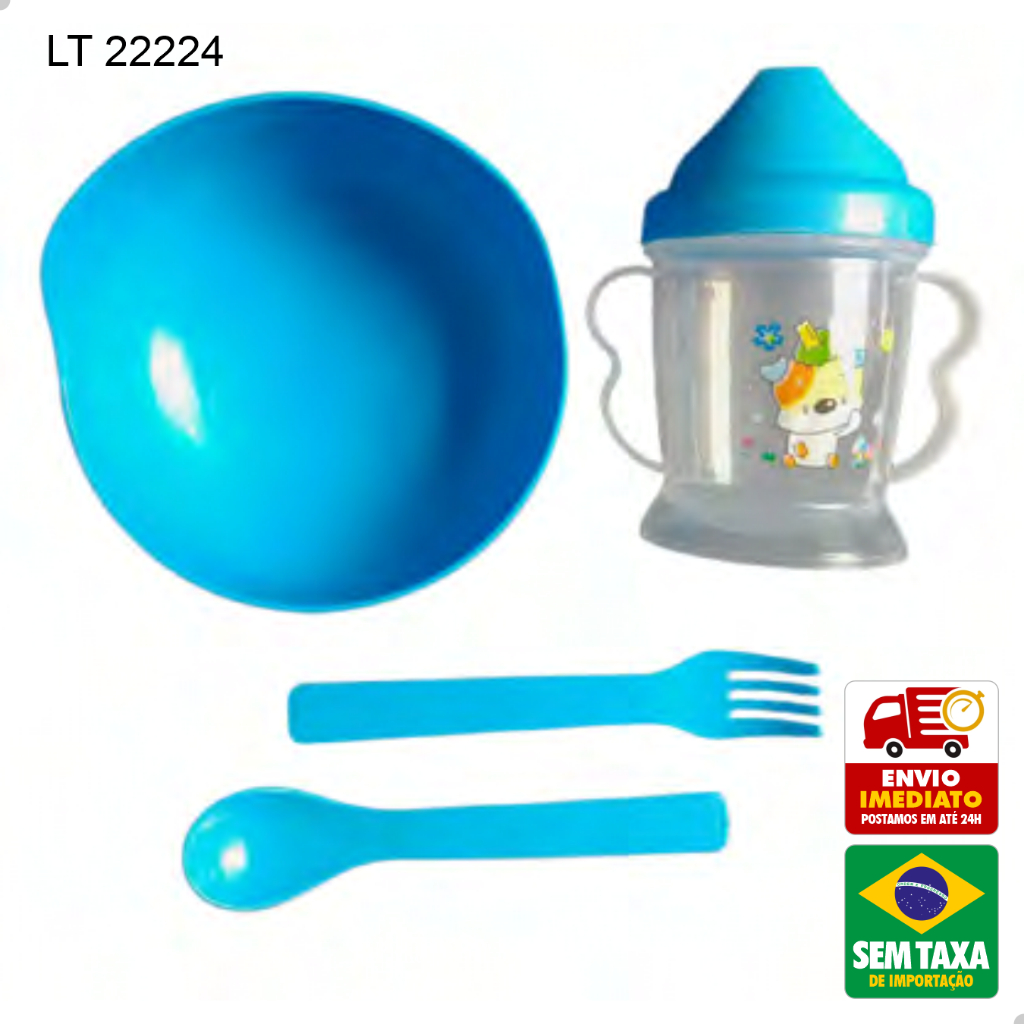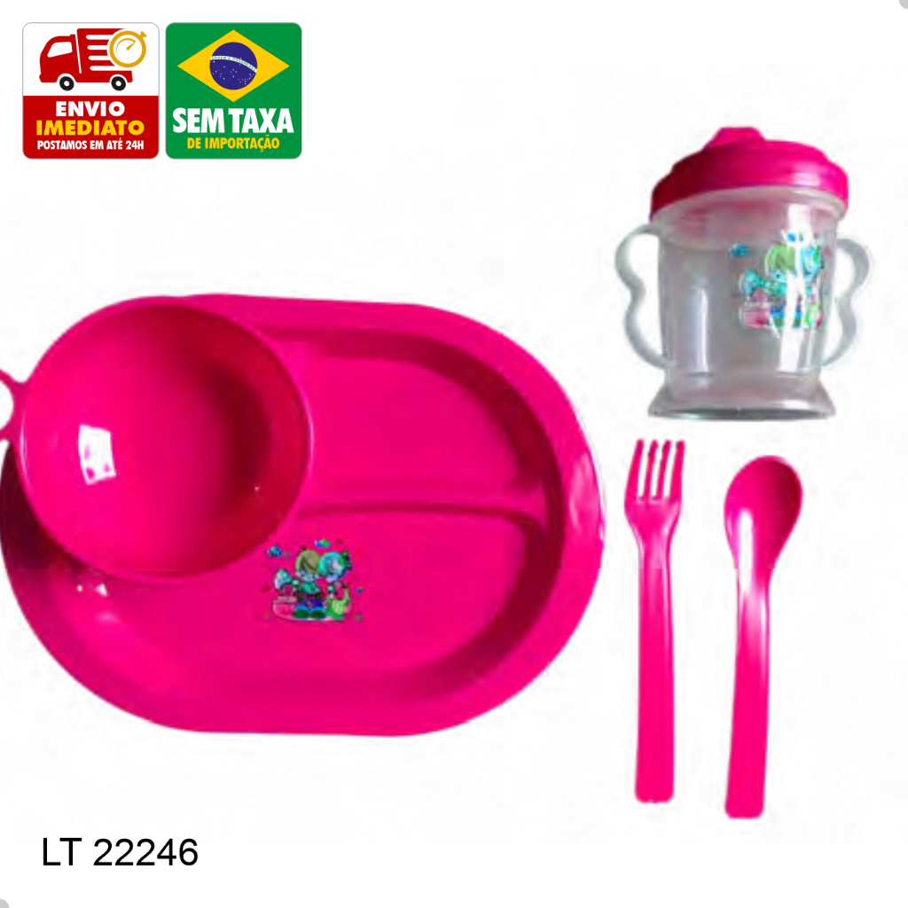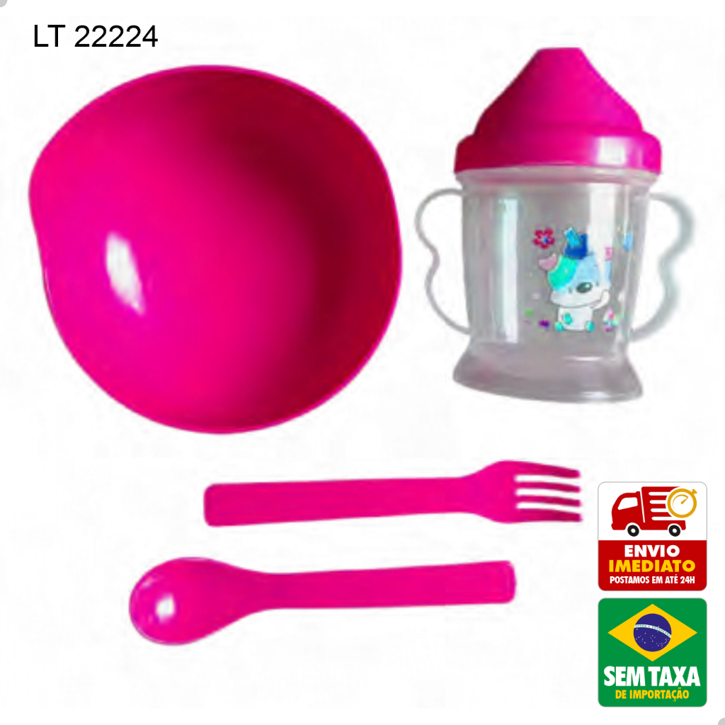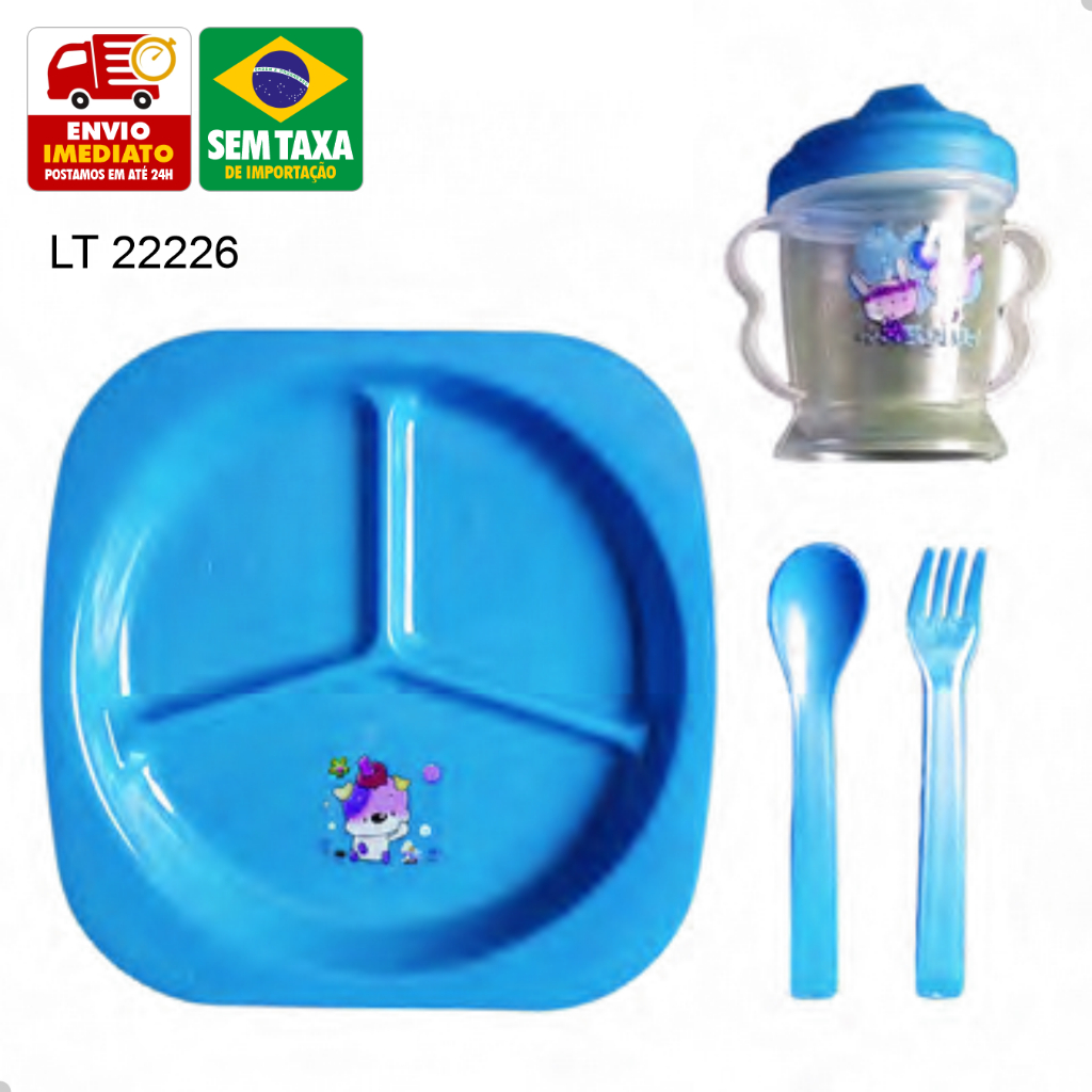 Kit para Refeição Infantil Plastico Copo Talher Prato Tigela 4 ou 5 Peças