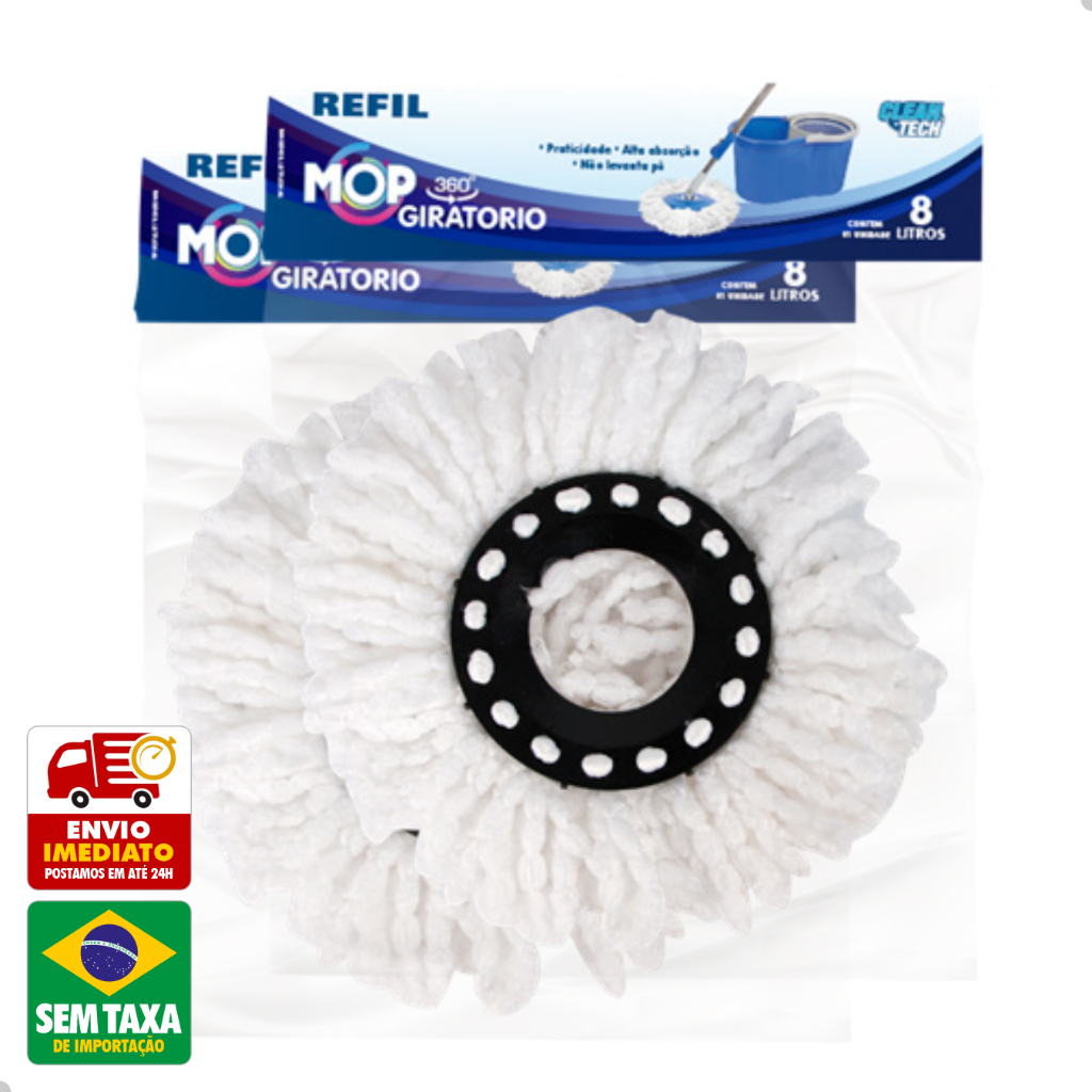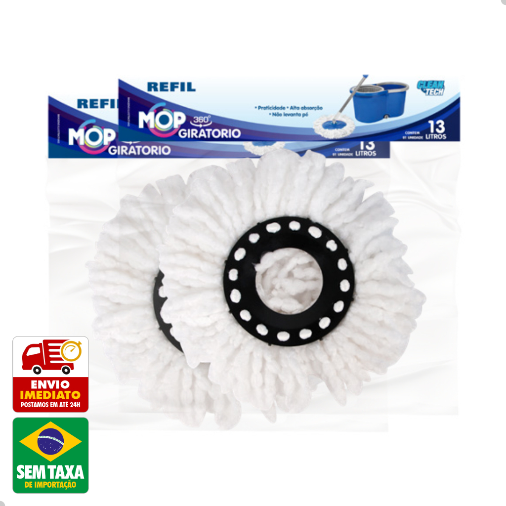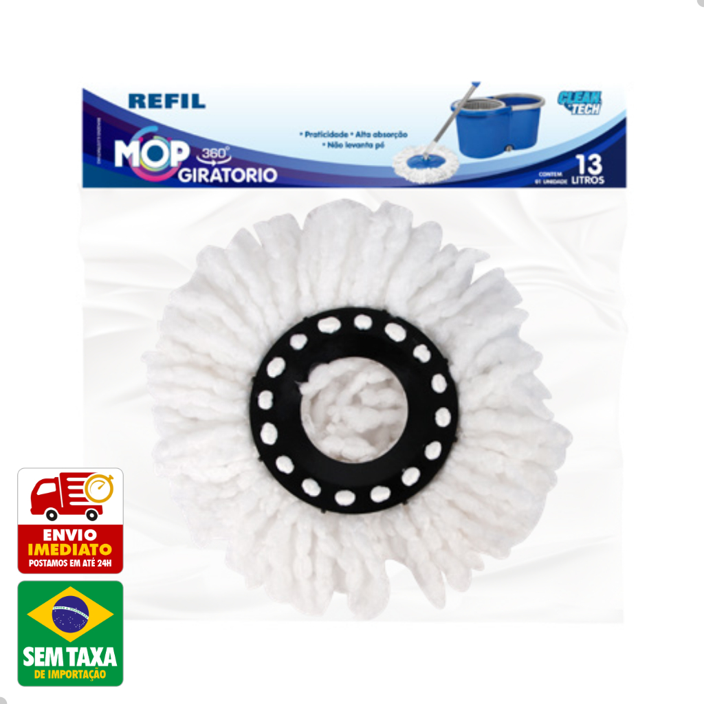 Refil Mop Giratorio 360º Balde Esfregao 8L 13L 27cm Clean Tech