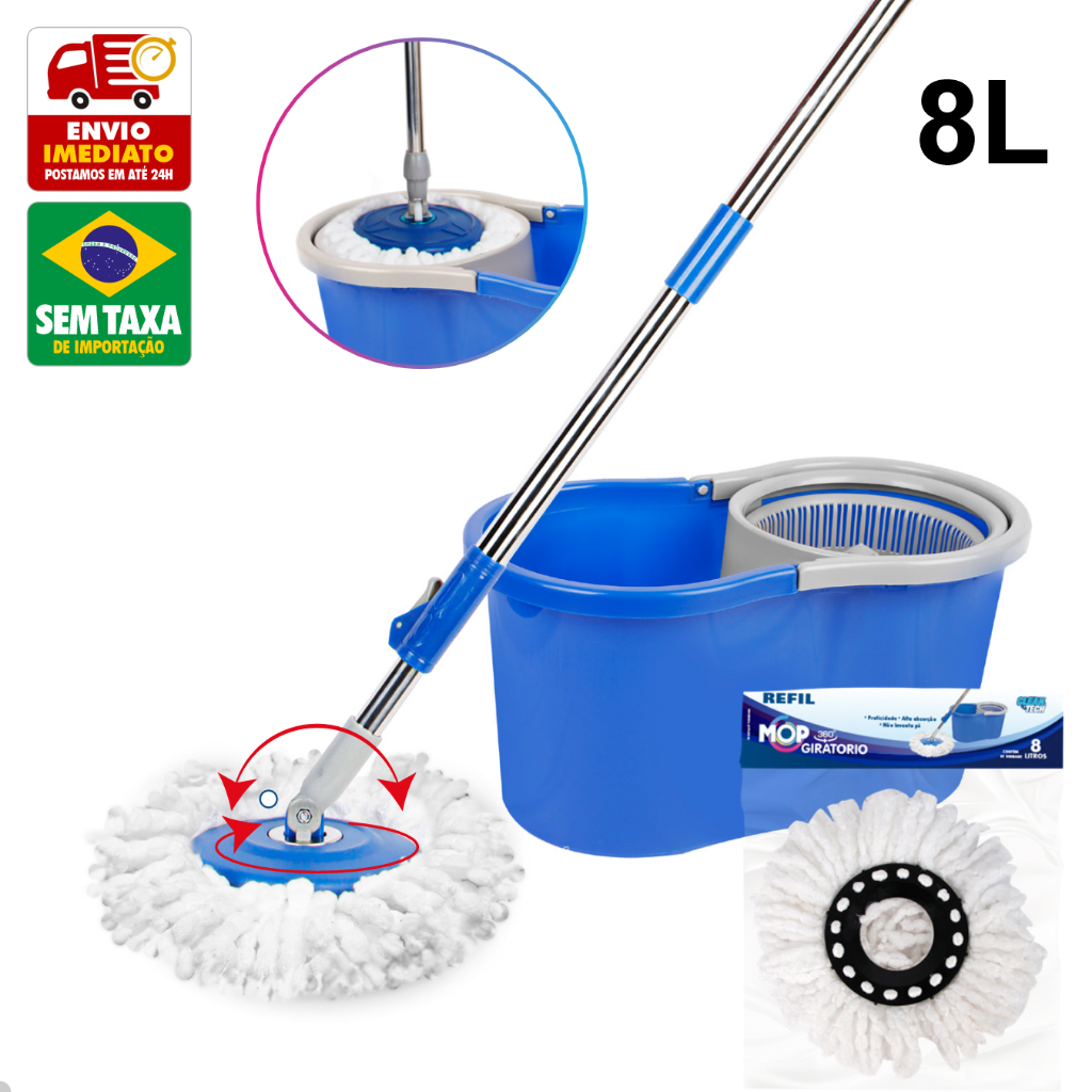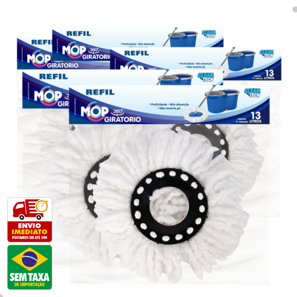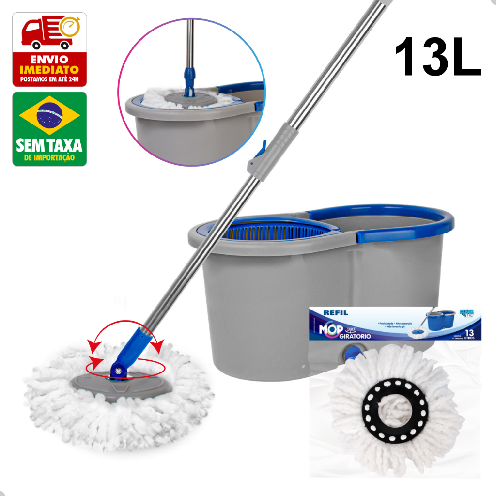 Refil Mop Giratorio 360º Balde Esfregao 8L 13L 27cm Clean Tech