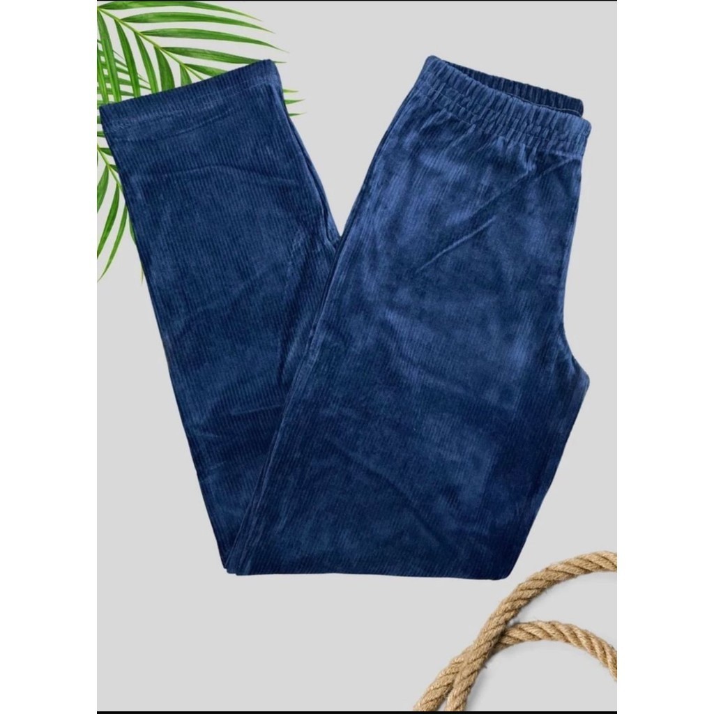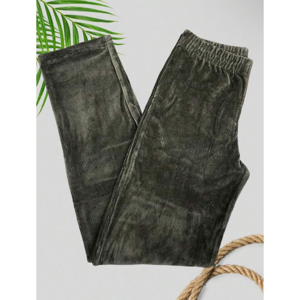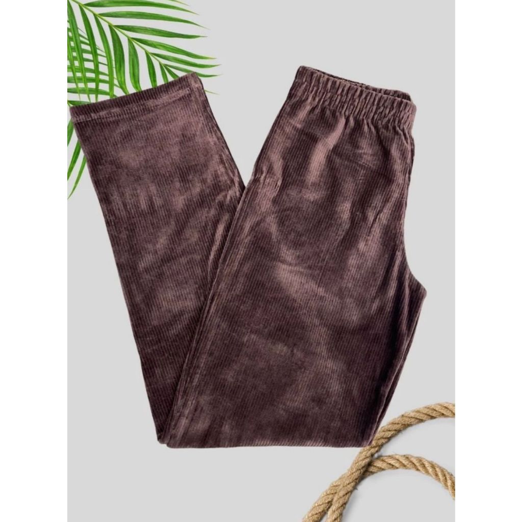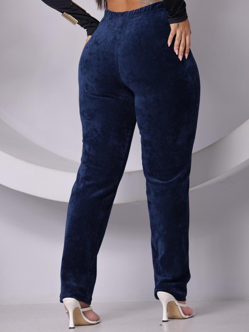Calça Reta Feminina de Veludo Cotelê Cintura Alta e Confortável