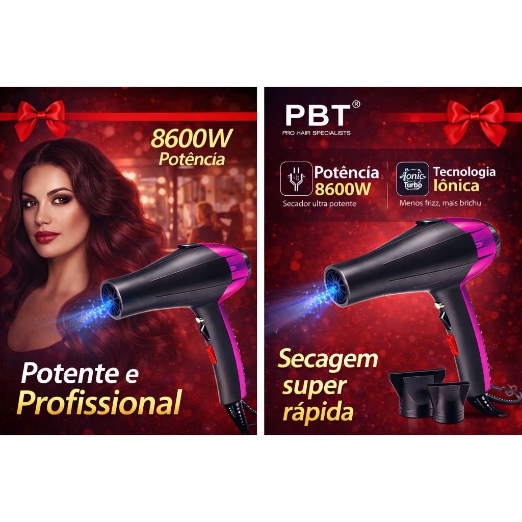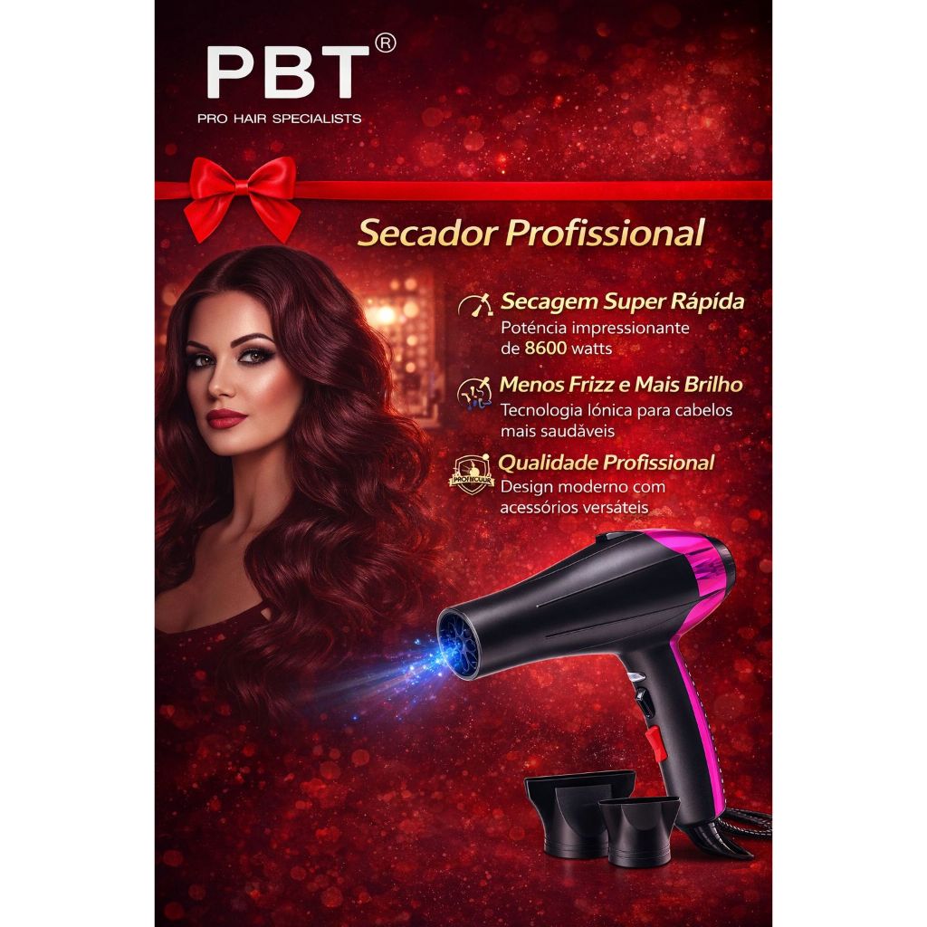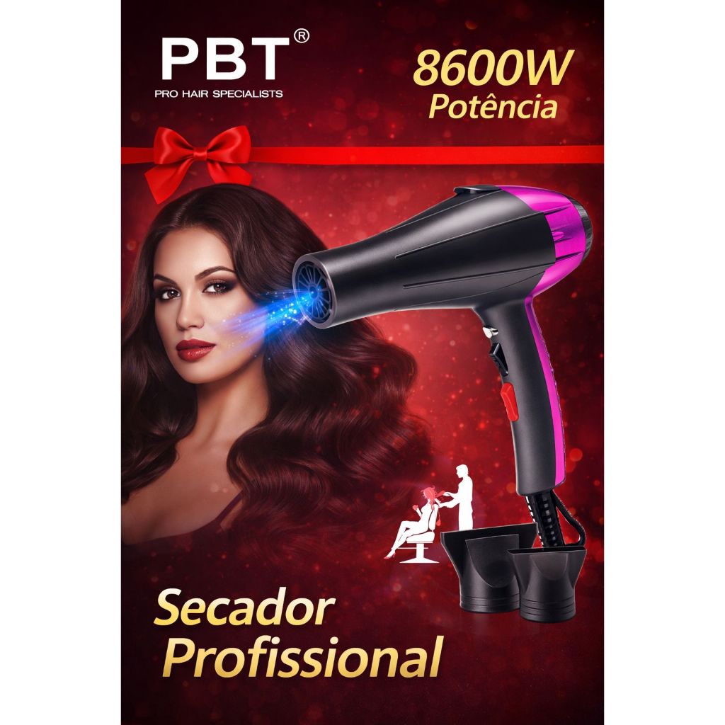 Secador De Cabelo Ion Profissional 8600W Voltagem 110v e 220v PBT-7701