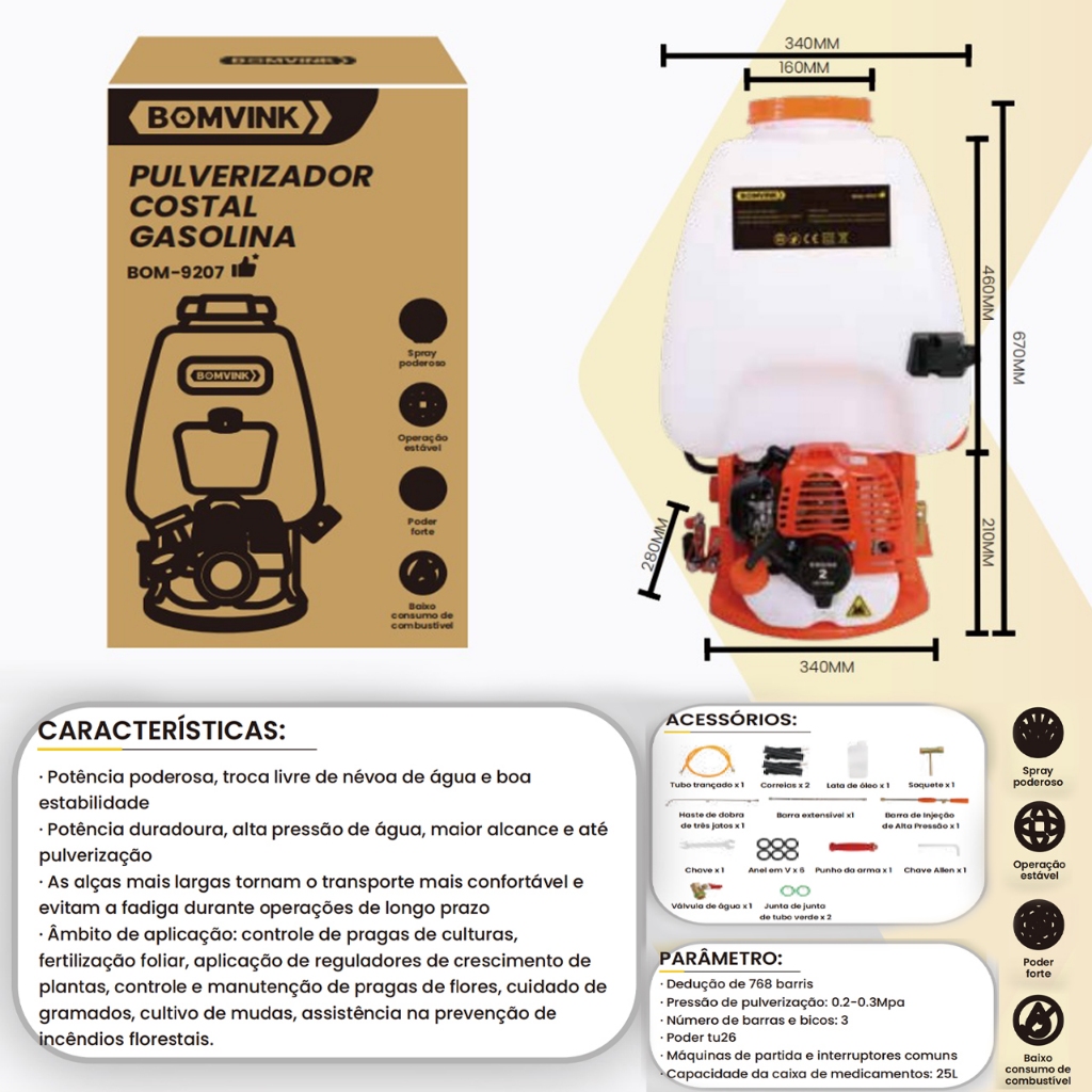 Pulverizador Costal Agrícola a Gasolina 25 Litros Bomvink