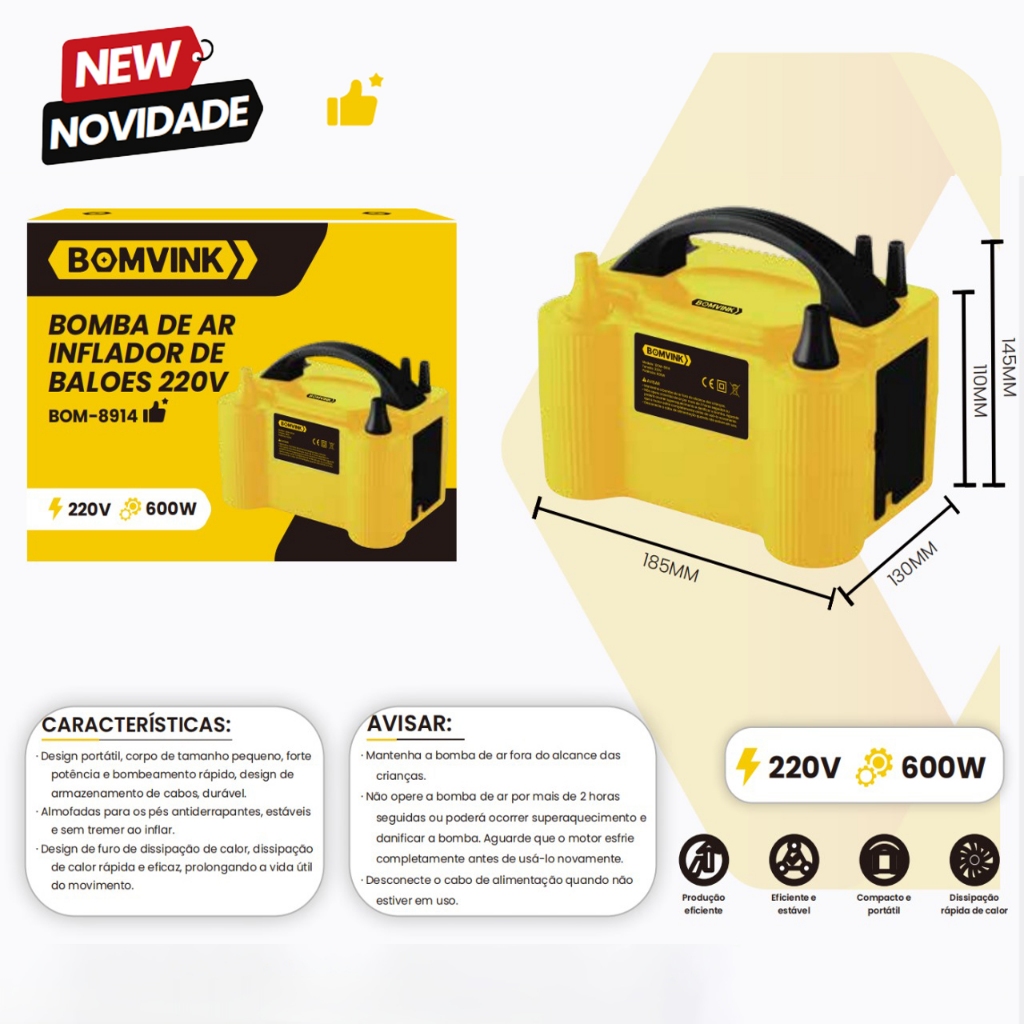 Bomba de Ar Inflador de Balão 127V/220V-600W Bexiga Compressor 2 Bicos