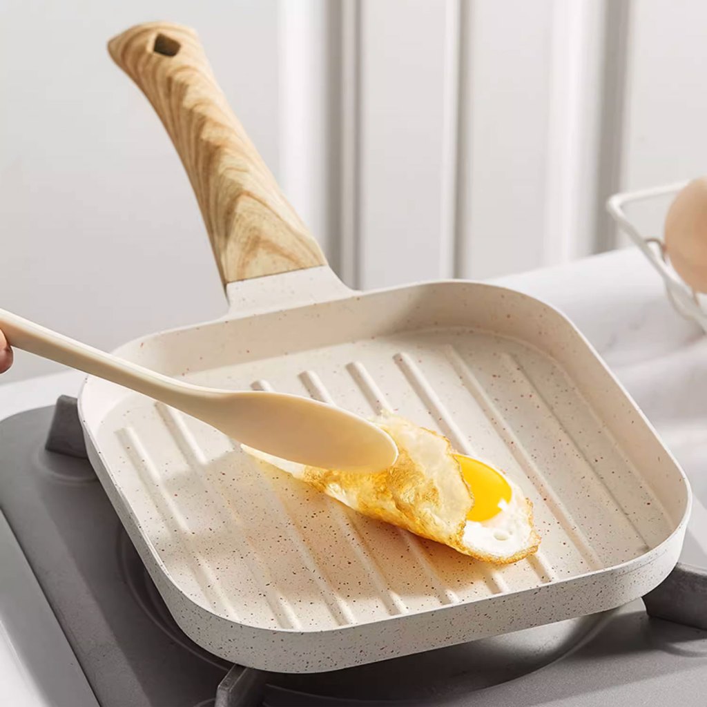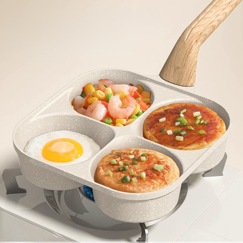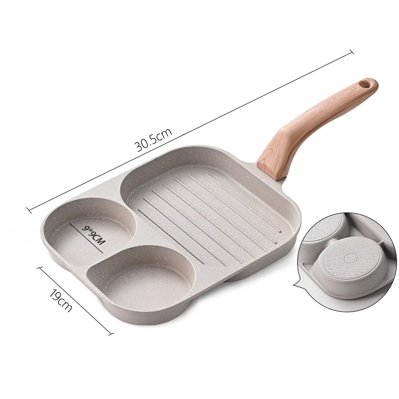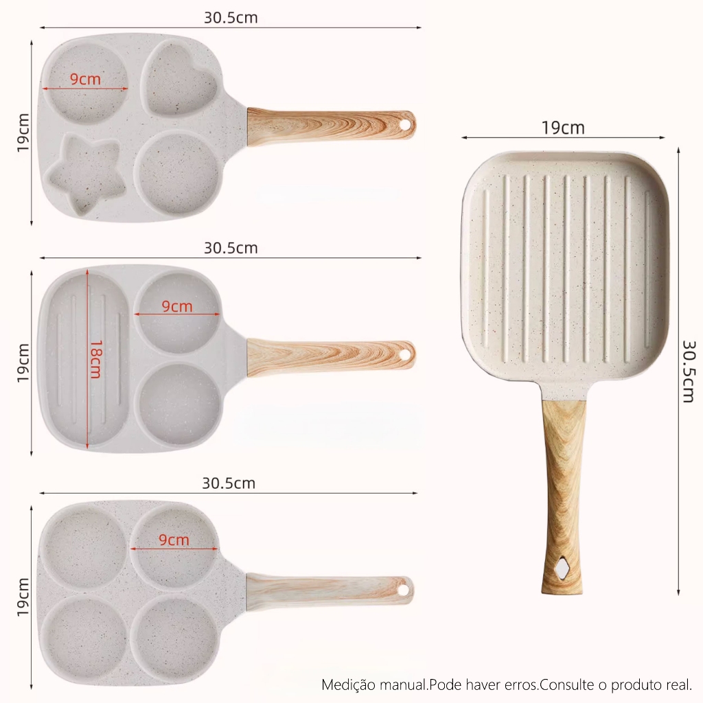 Frigideira Multifuncional Antiaderente Ovos Hambúrguer Omelete Com Alça De Madeira