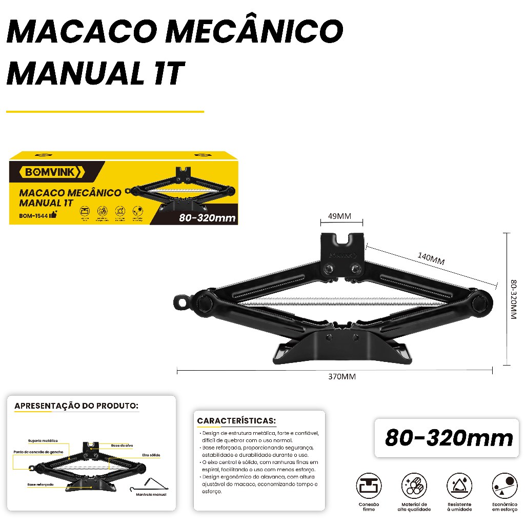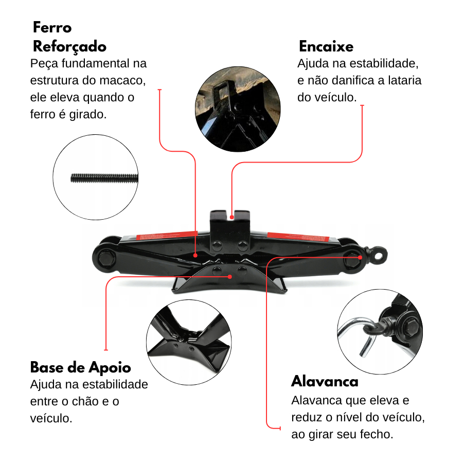 Macaco Sanfona de Carro Suporta 2 Toneladas 2000 kgs Jacaré Universal Original para Troca de Pneu