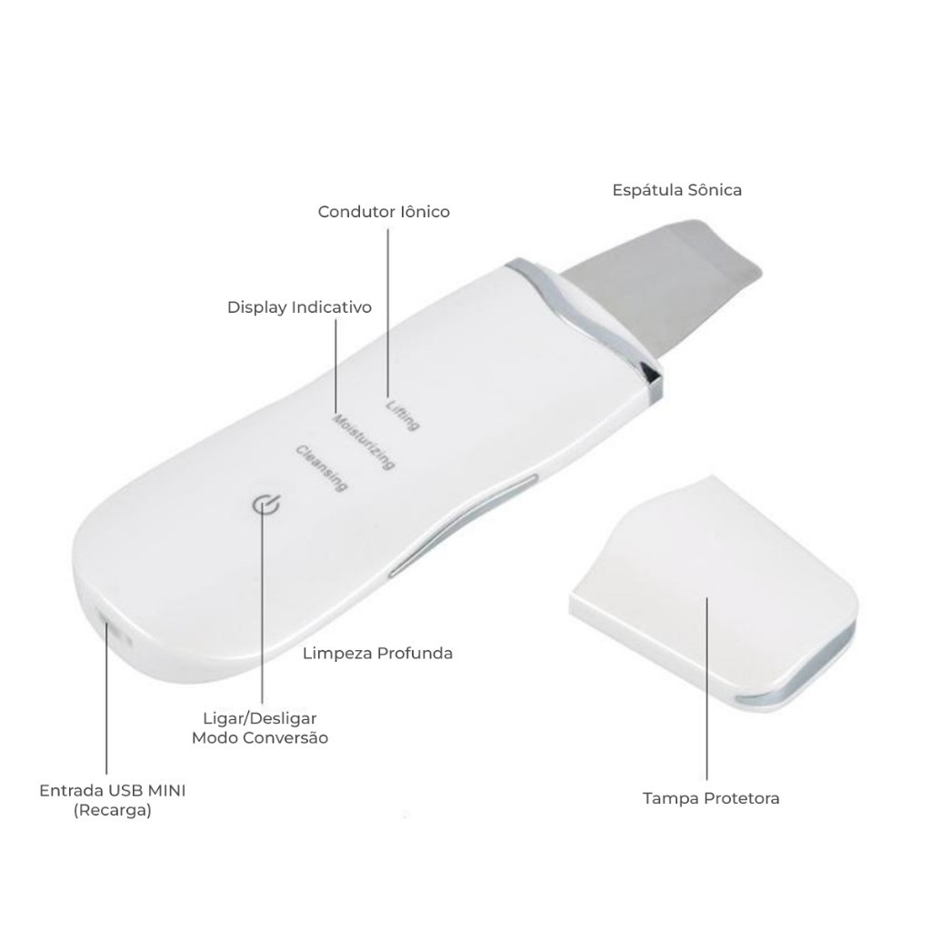 Aparelho de Peeling Esfoliante Ultrassônico Limpeza Facial Profunda Remoção de Cravos Antirrugas Sonic Skin