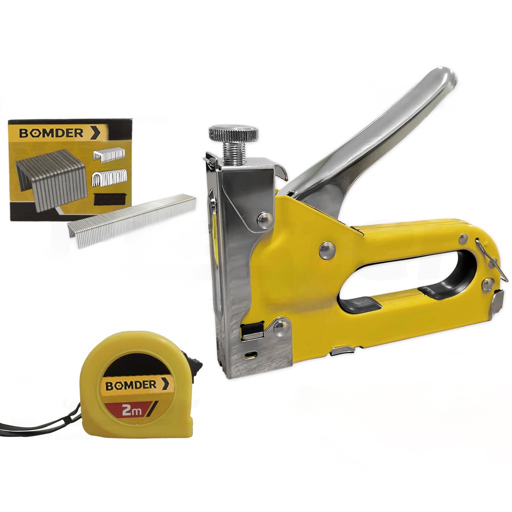 Grampeador Tapeceiro com Trena 2 Metros + 1100 Grampos e Maleta