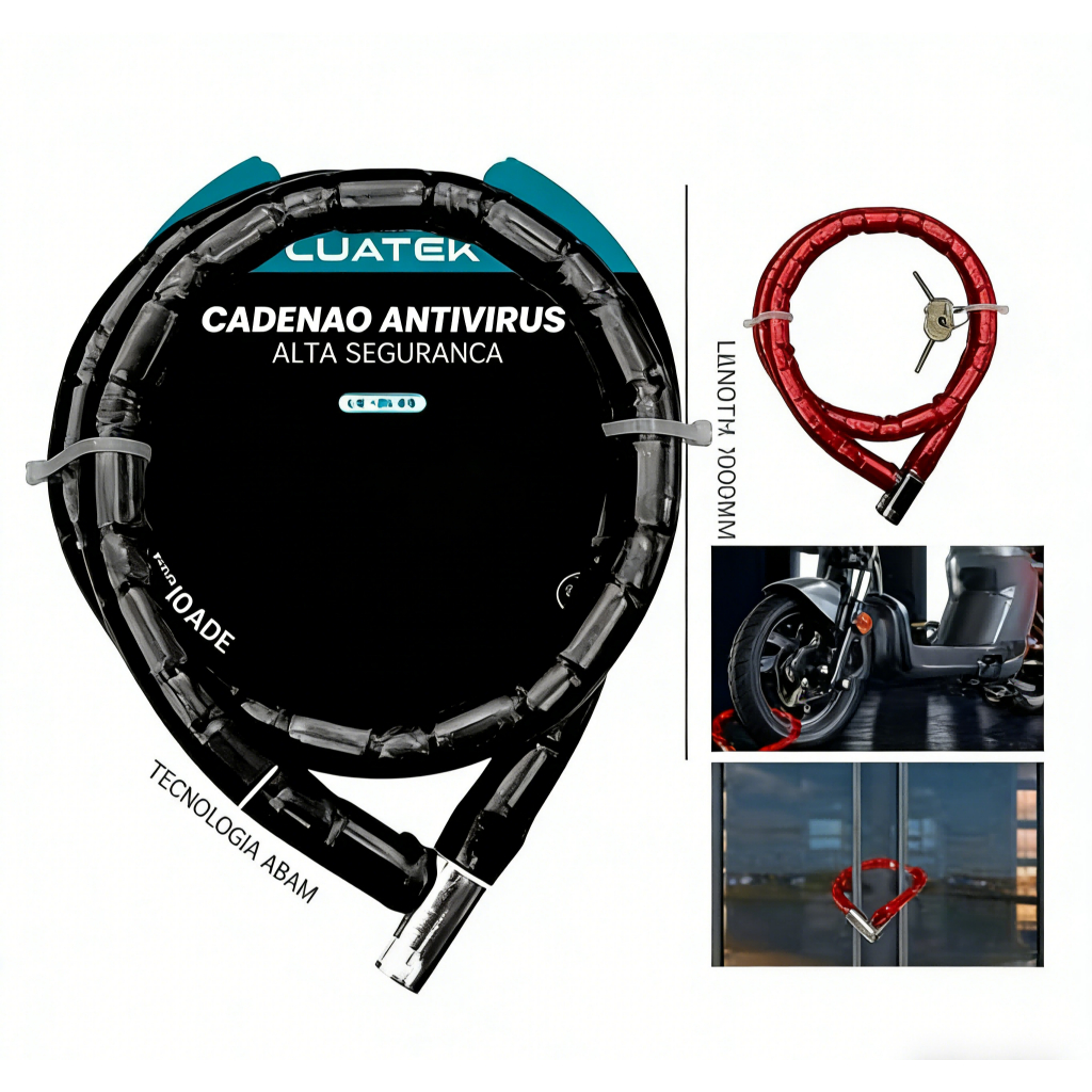 Trava Cadeado Antifurto Articulado Moto Bicicleta Bike Portão 100cm x 18cm Aço Segurança Reforçado
