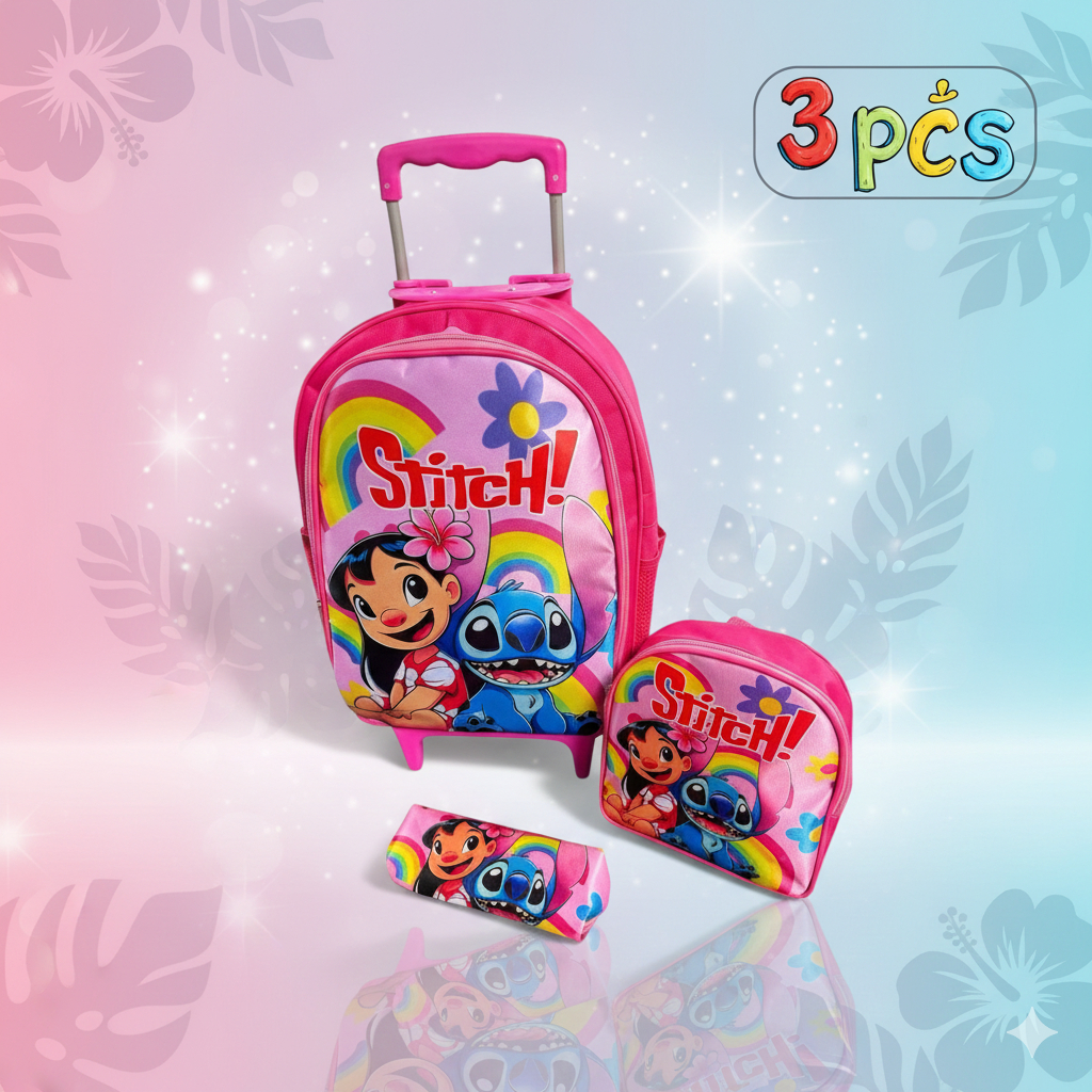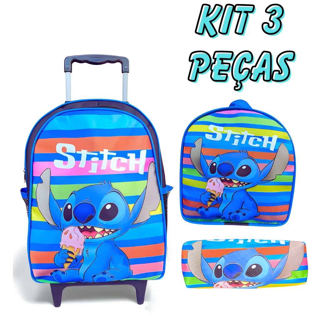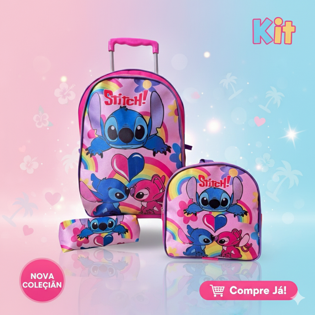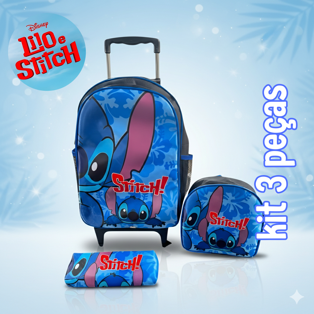 Kit Mochila Lilo & Stitch Infantil com Rodinhas – Envio Rápido