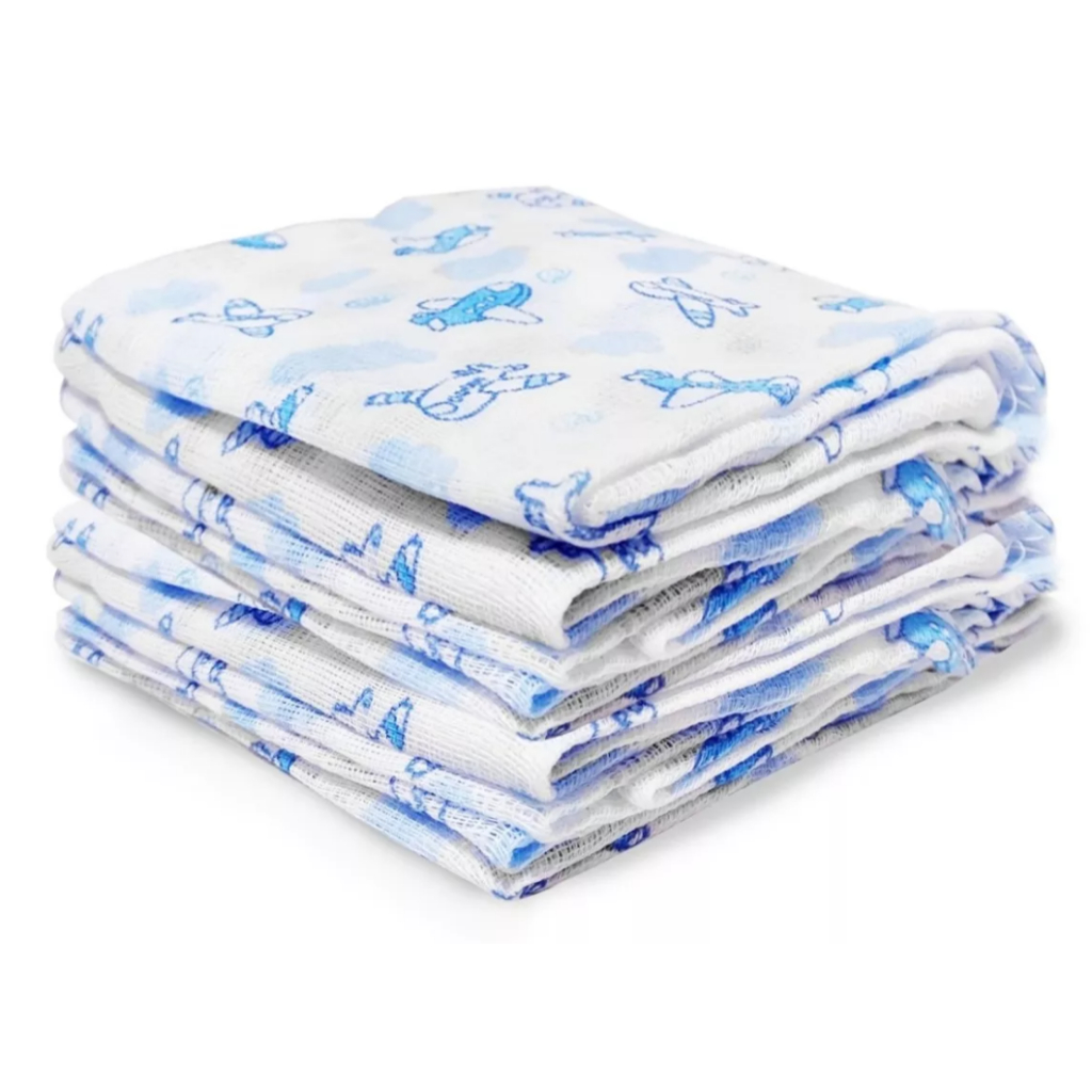 Fralda de Pano Estampada Sortida 100% Algodão 5 Unidades