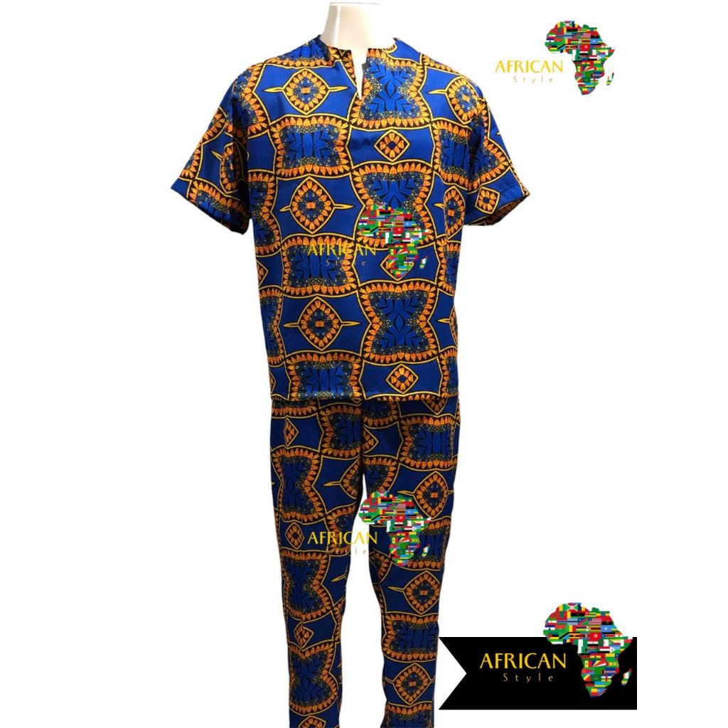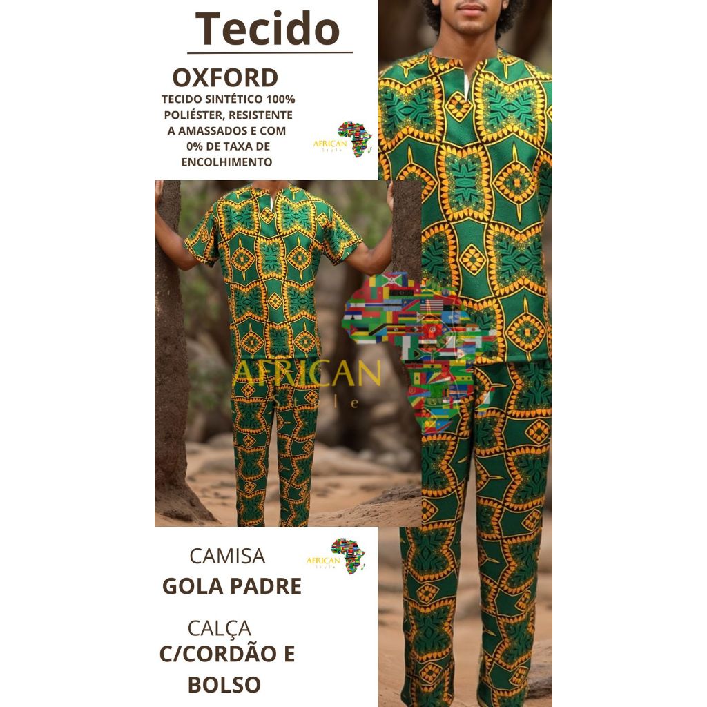 Conjunto Roupa Umbanda/Candomblé Ankara Estampado Africano Masculino