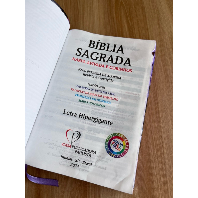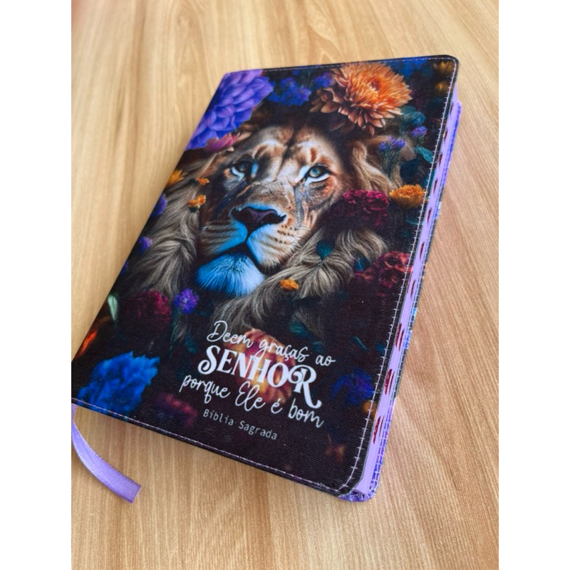 Bíblia Sagrada ARC Evangélica Letras Hipergigante com harpa e Índice Ref:LEAO FLORAL ROXO INDICE