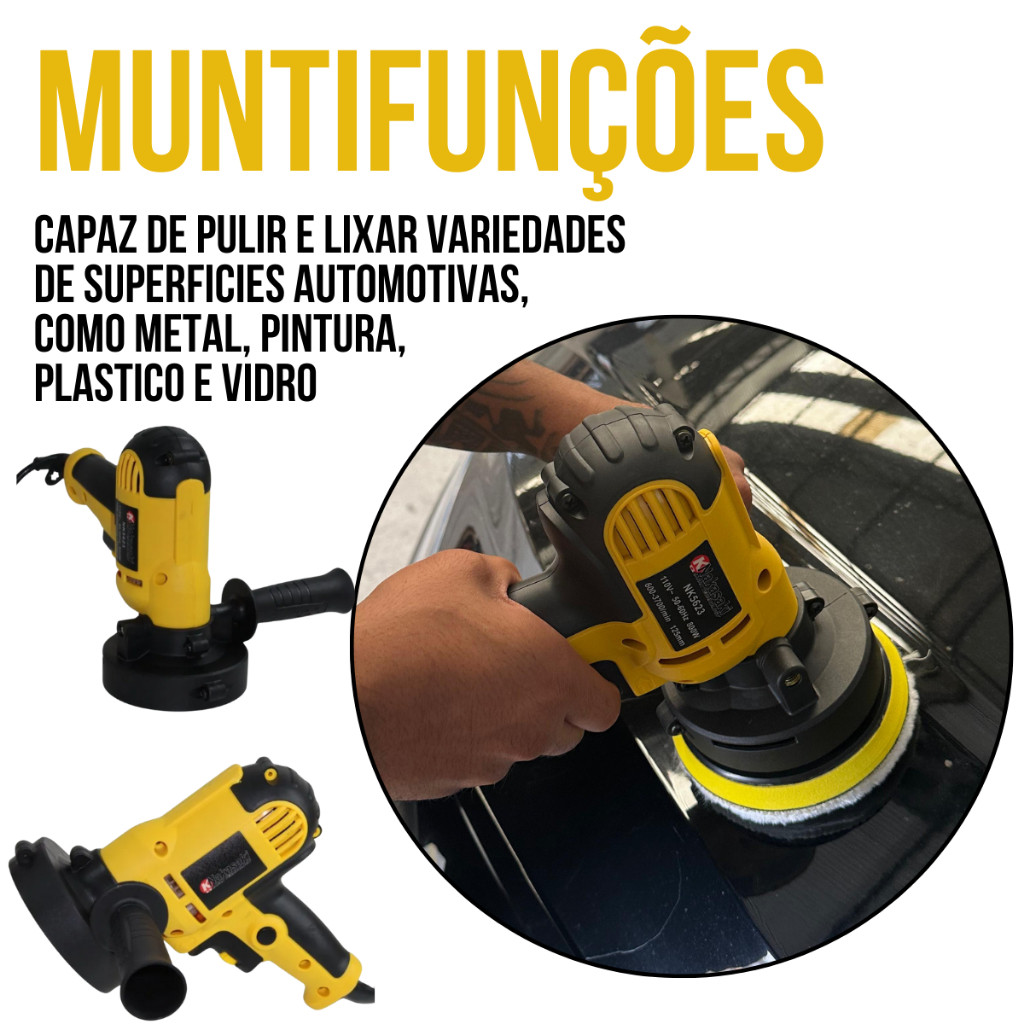 Polidor Politriz Lixadeira 850W Multifunções Angular Automotiva de Mão Esmerilhadeira