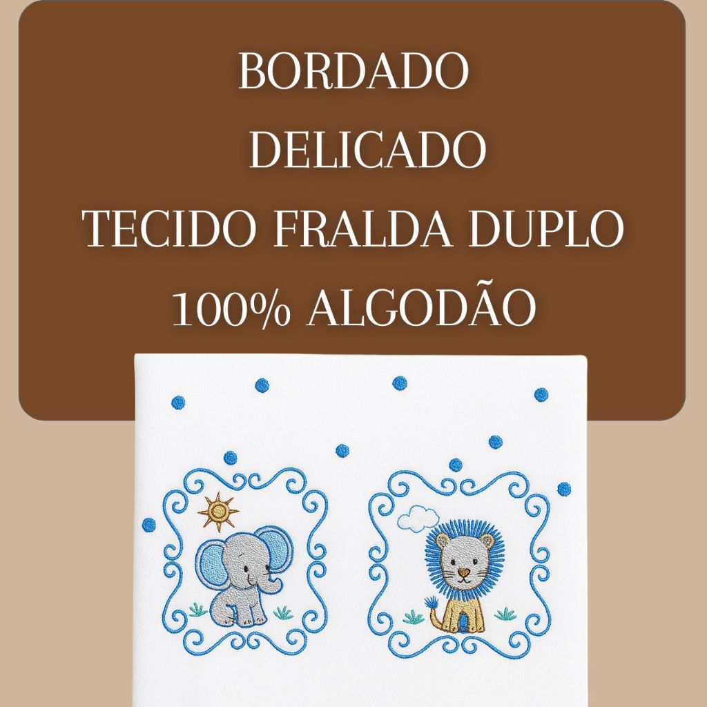 Toalha Fralda de Banho Bordada Cueiro Bebe 1m x 70cm Tecido Duplo 100% Algodão Enxoval Recém Nascido