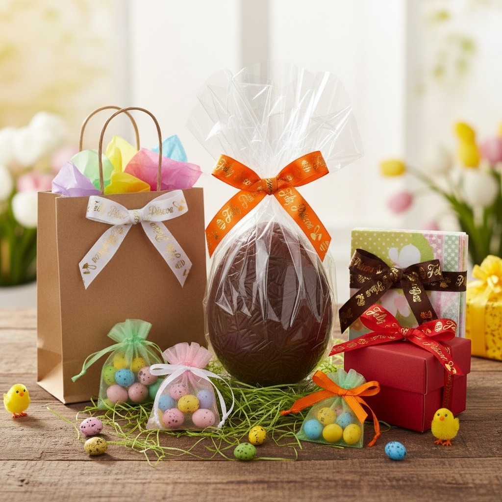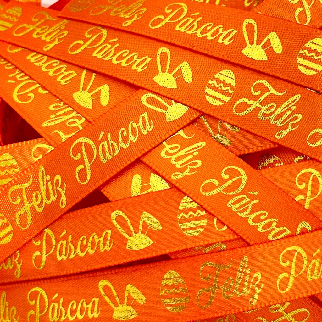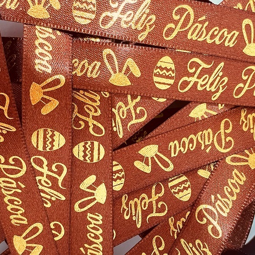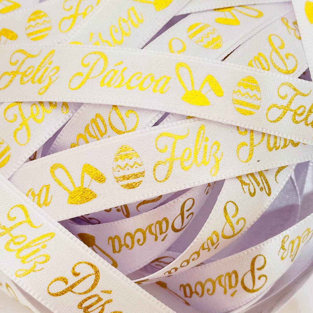 Fita de Cetim Decorado Feliz Páscoa 15mm