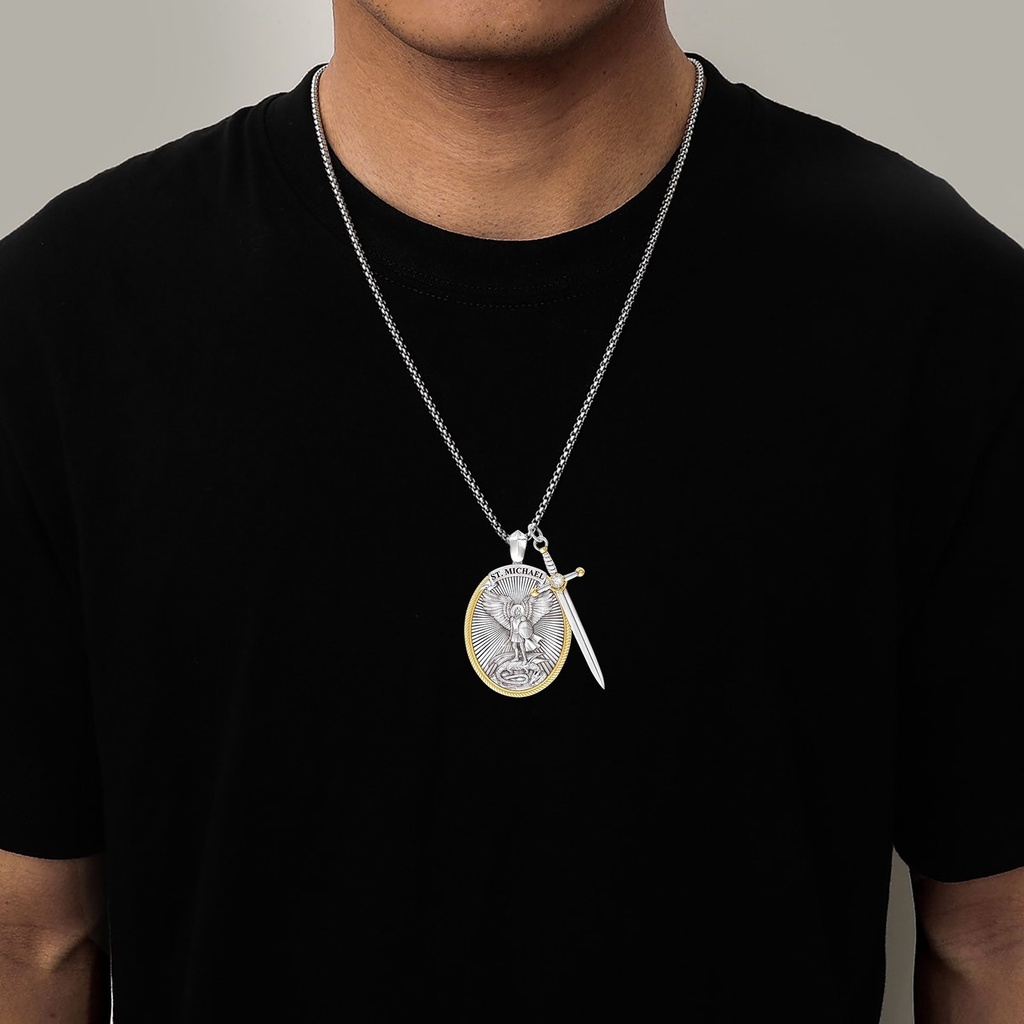 São Miguel Anjo Colar Criativo Cavaleiro Escudo Vintage Pingente Jóias Masculinas