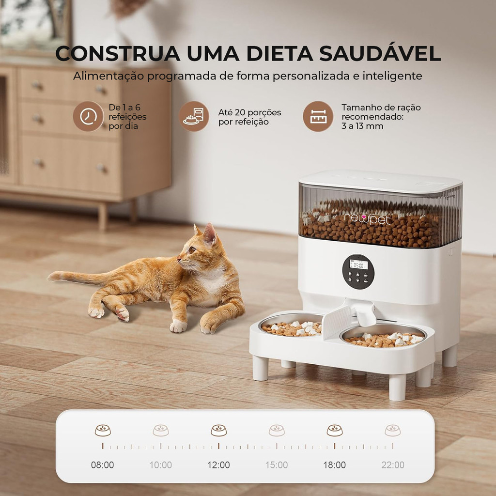 Newpet 5L Alimentador Automatico Pet Tuya WiFi Alimentador Automatico para 2 Gatos Fácil de Altura da Tigela - Bivolt
