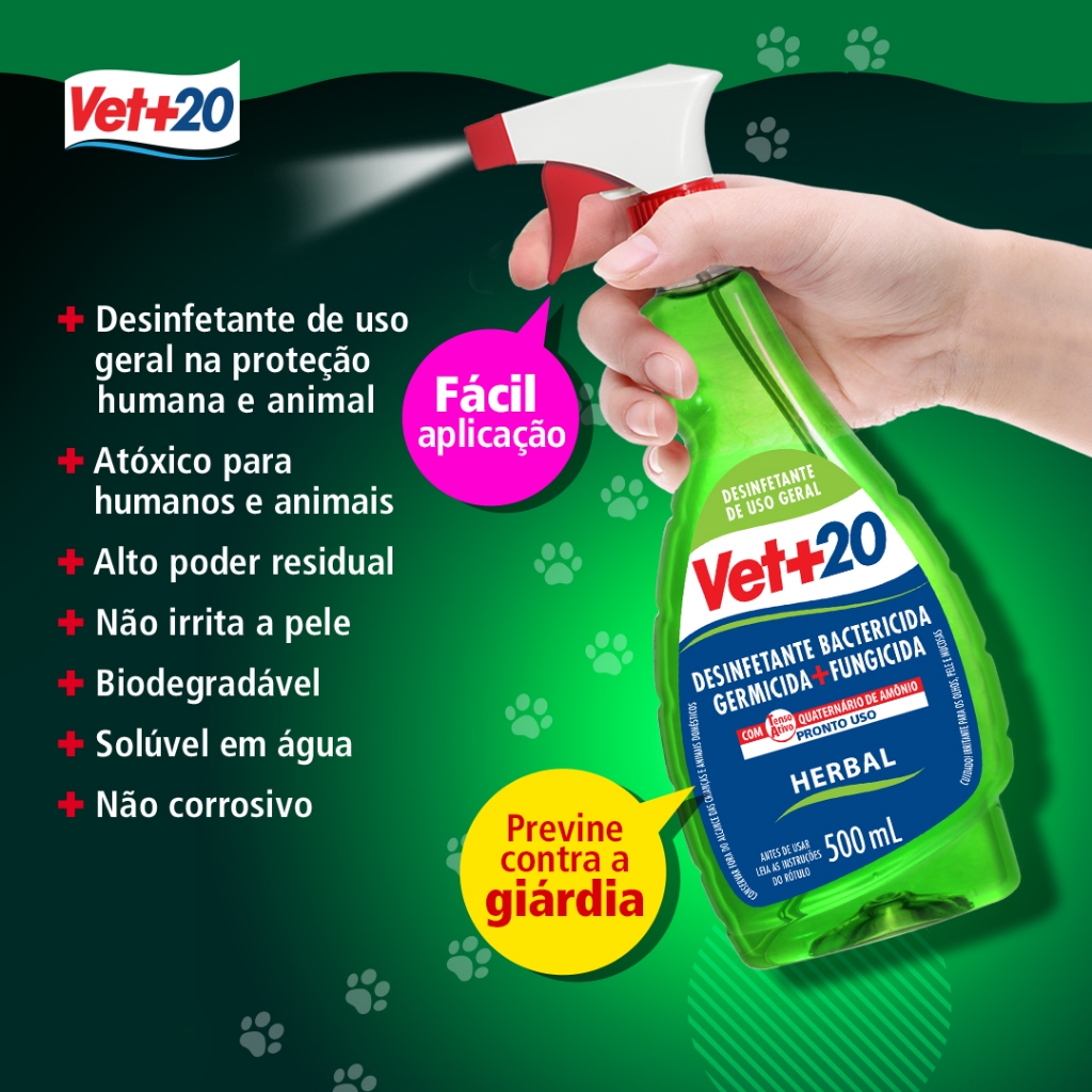 Desinfetante Bactericida Pronto Uso Spray Vet+20 500 mL