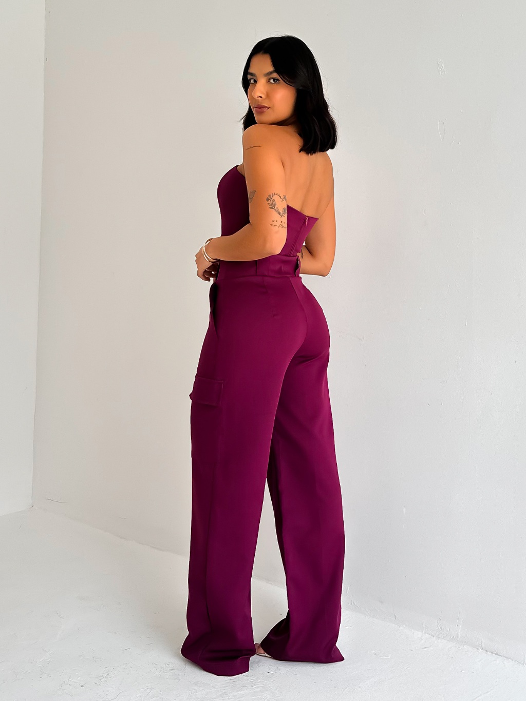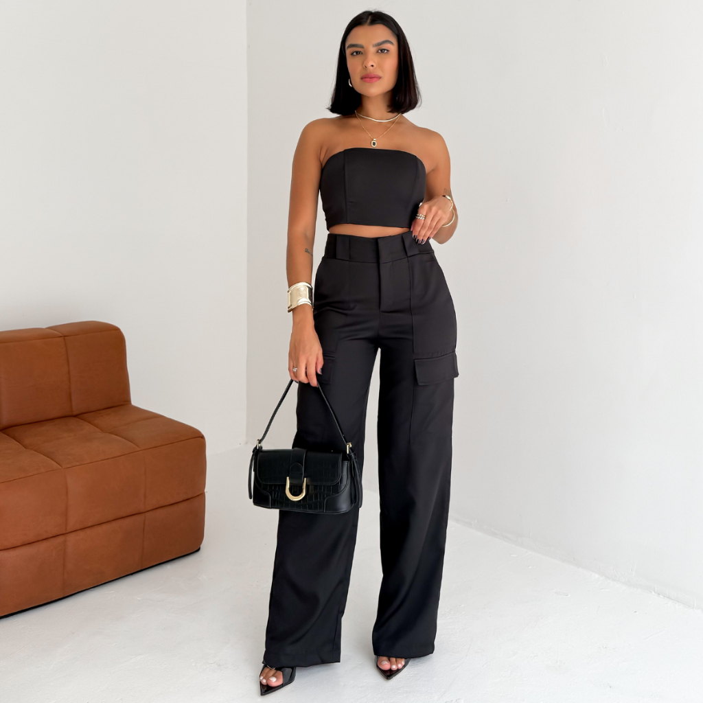 Conjunto Alfaiataria Calça Cargo com Bolso Lateral e Top sem Alça da Lunii Coleção Outono Inverno
